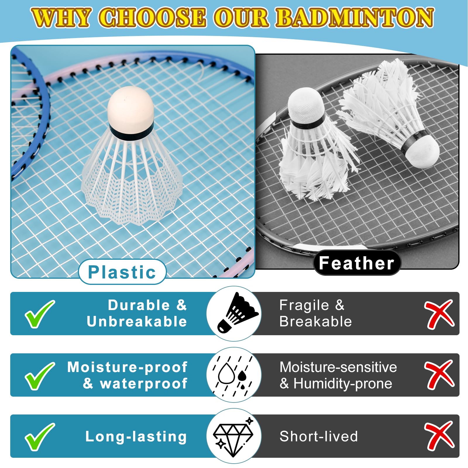 Economical shuttlecocks for amateurs, leisure players,beginners.