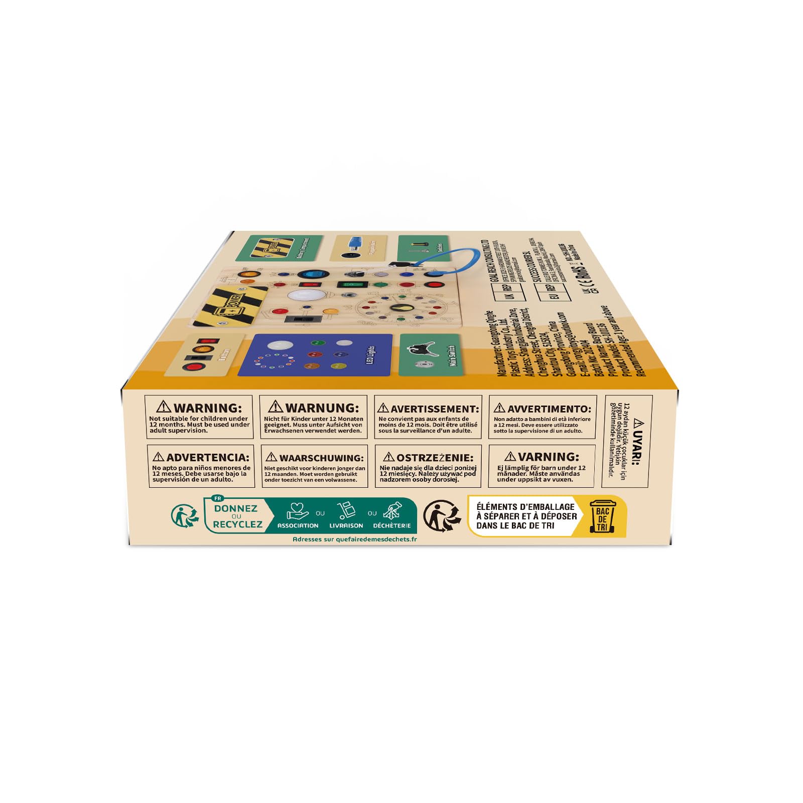 • Learn and Play - This Montessori Busy Board is the ideal birthday or Christmas present for children. This toddler busy board may help toddlers learn the differences between colors and sizes. This tactile toy assists in developing a baby's hands-on and thinking abilities. Please prepare two AAA batteries before using them.