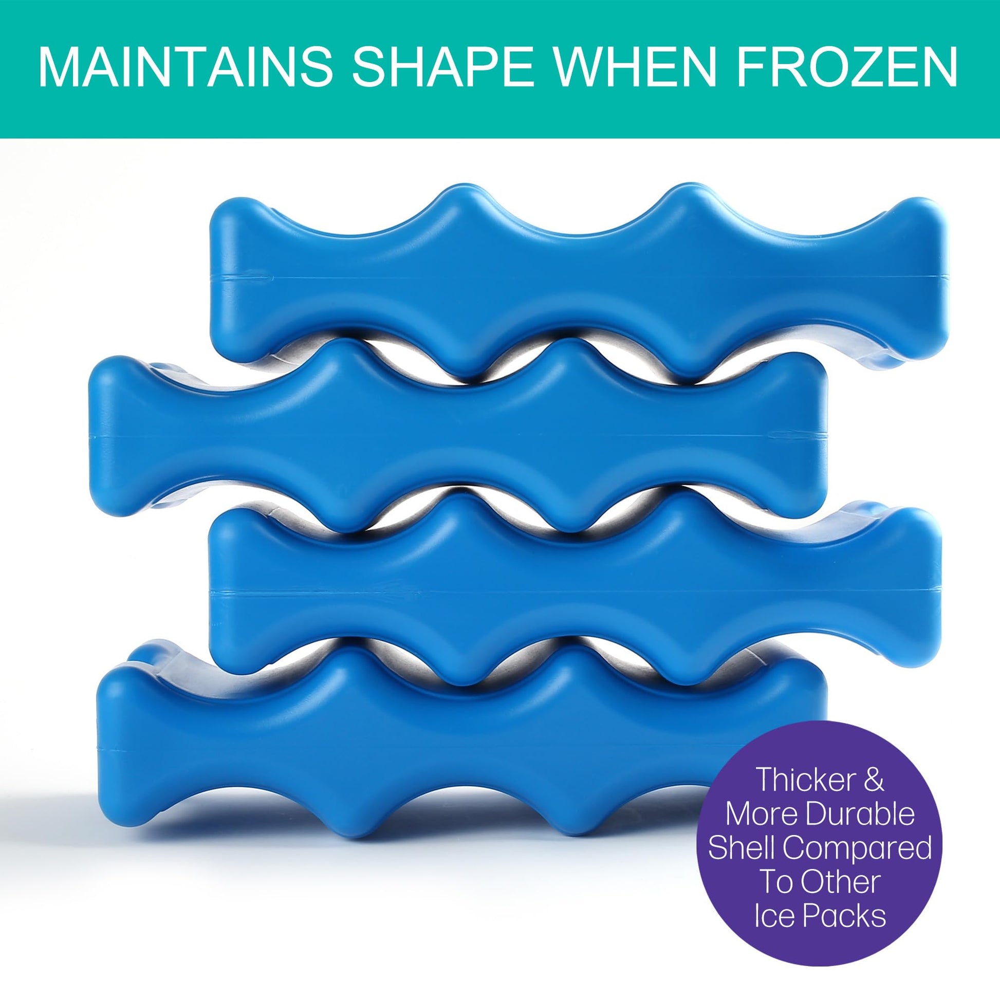 Ice Packs for Coolers, Breastmilk Bottle Storage, Lunch Box, Insulated Bags, 4-Pack Contoured Freezer Packs, Long Lasting Reusable Cool Packs for Canned Beer Soda, Camping Beach Picnic