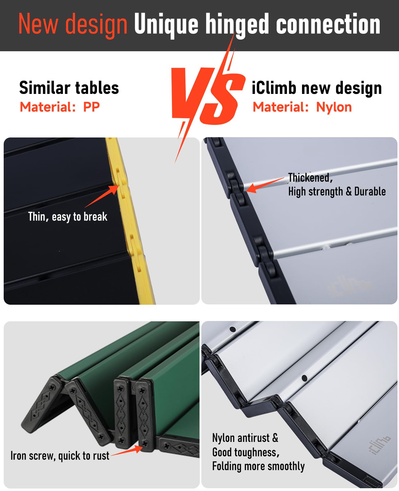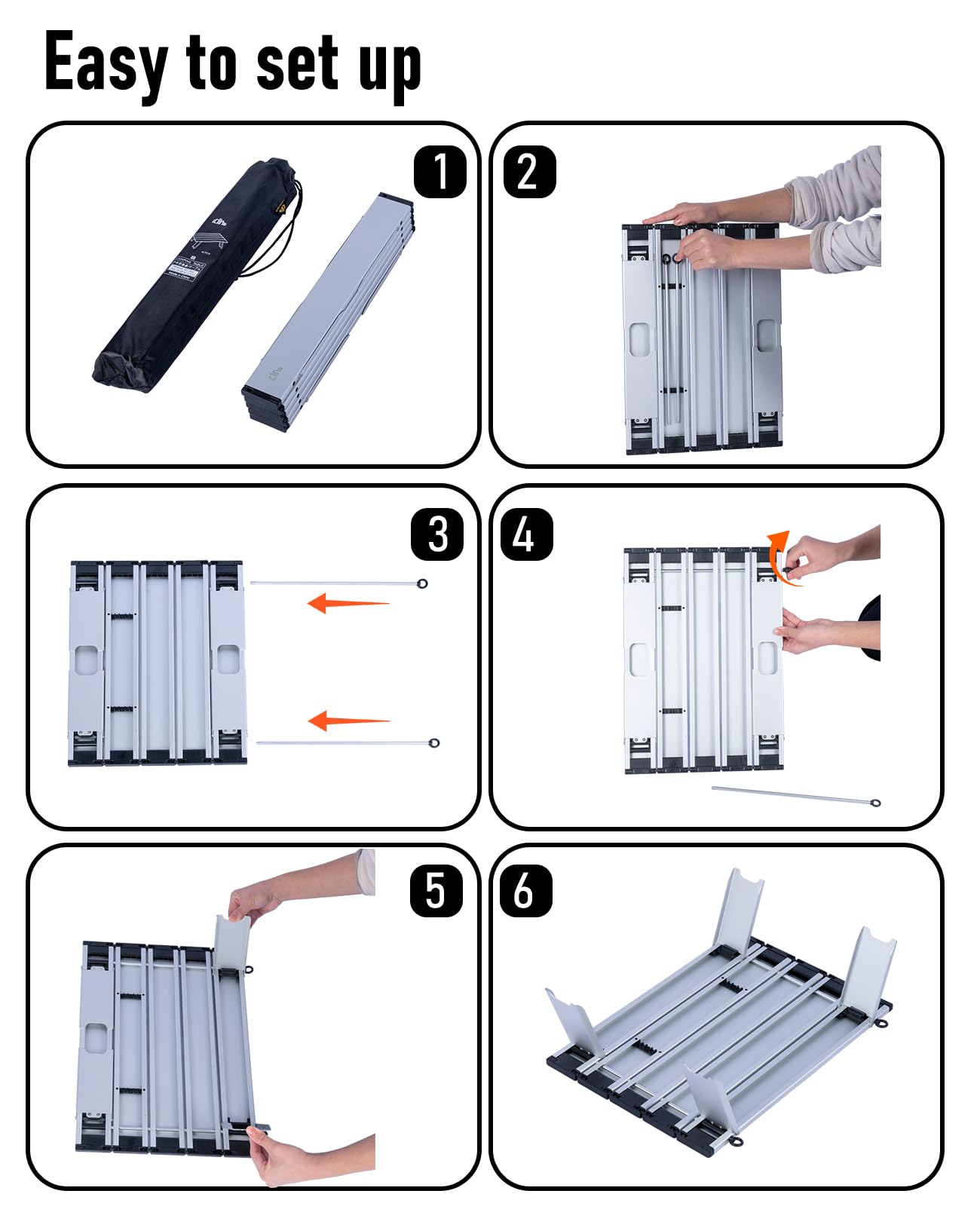 • Ultralight, made of high quality aluminum alloy 6063, only 2.4 lbs; Max Load 66 lbs; Unlike wooden or nylon-top tables, this table is durable, waterproof, corrosion-resistant, easy to clean; Heat resistant, can put your stove on
