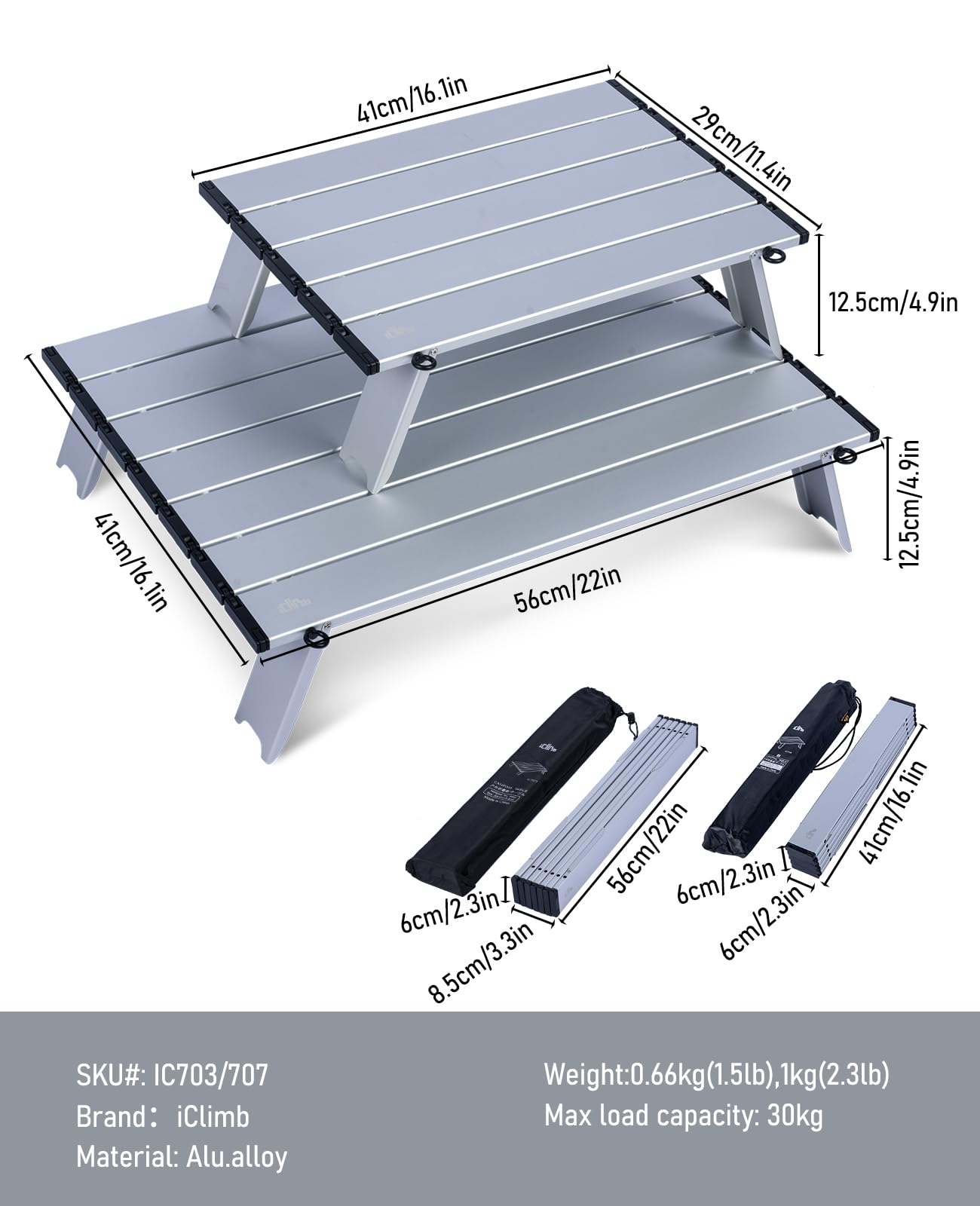iClimb Ultralight Compact Mini Beach Picnic Folding Table with Carry Bag