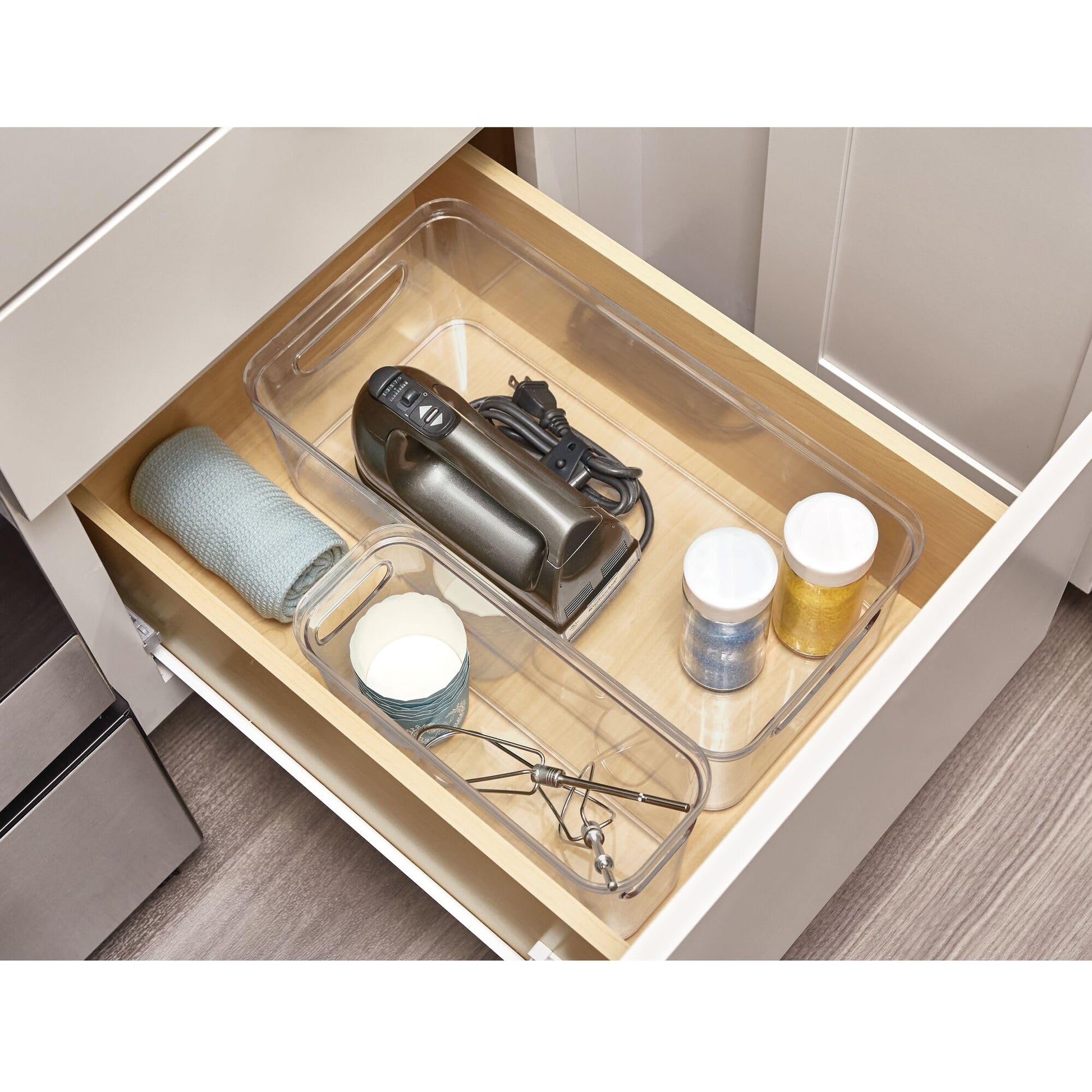 iDesign BPA-Free Plastic Crisp Large Pantry and Fridge Organizer with Easy to Grip Integrated Handles for Kitchen, Fridge, Freezer, Pantry and Cabinet Organization, 16" x 8" x 5", Clear