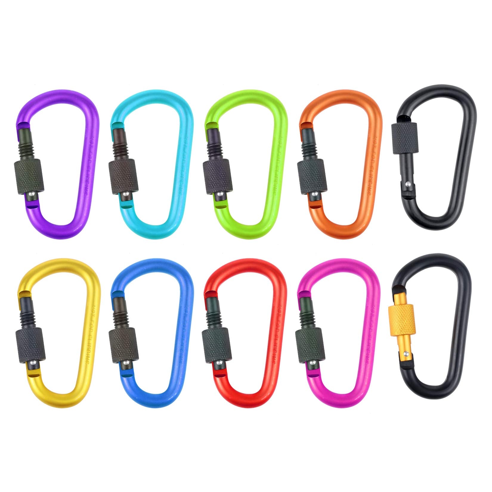 IEBUOBO 10 Pack Aluminum D Ring Key Rings Hiking Clips Locking Carabiner for Hiking Camping Fishing and Outdoor Use,Clips with Screw Gate Multicolored