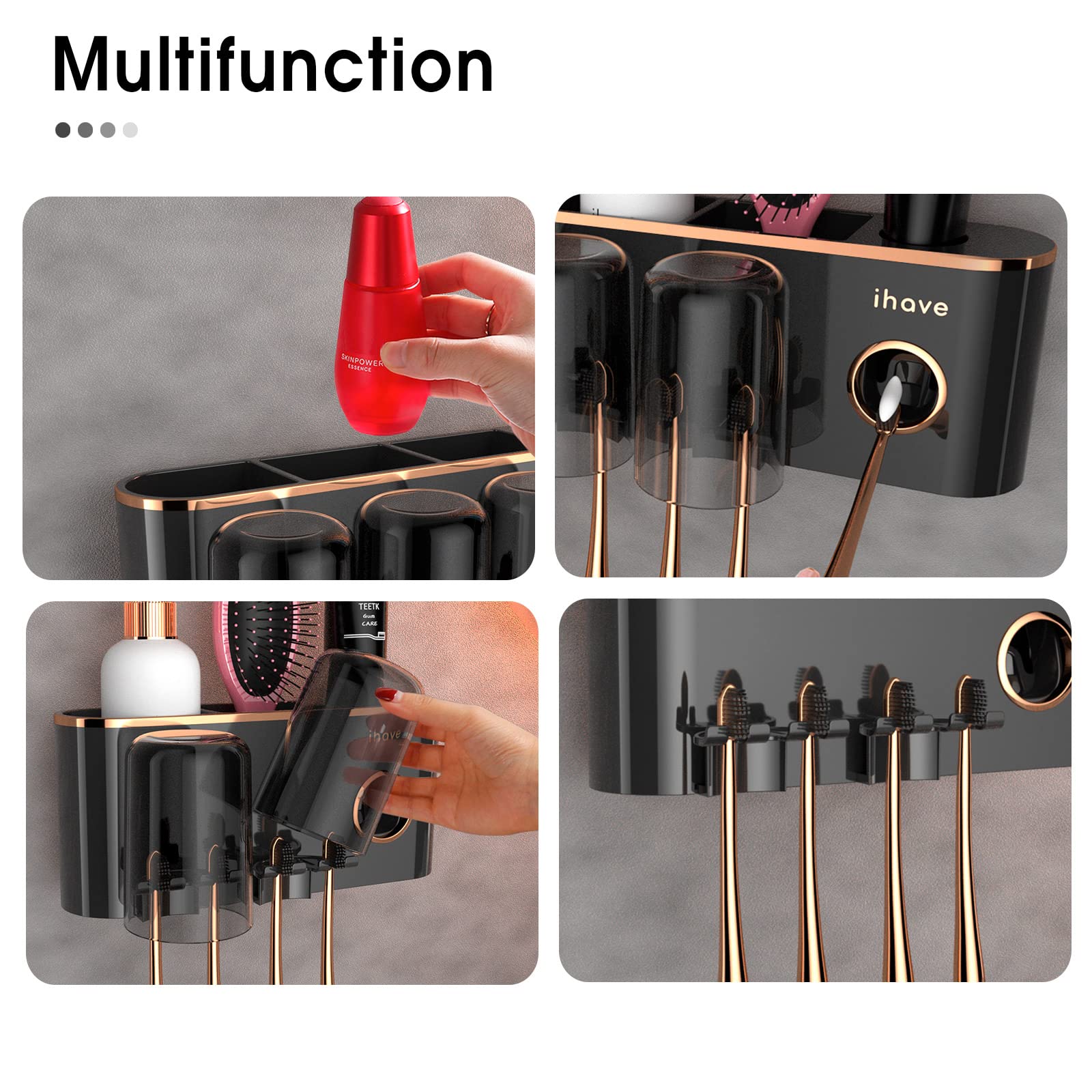 iHave Toothbrush Holders Bathroom Accessories with Toothpaste Dispenser, 2 Cups Toothbrush Holder Wall Mounted Bathroom Decor