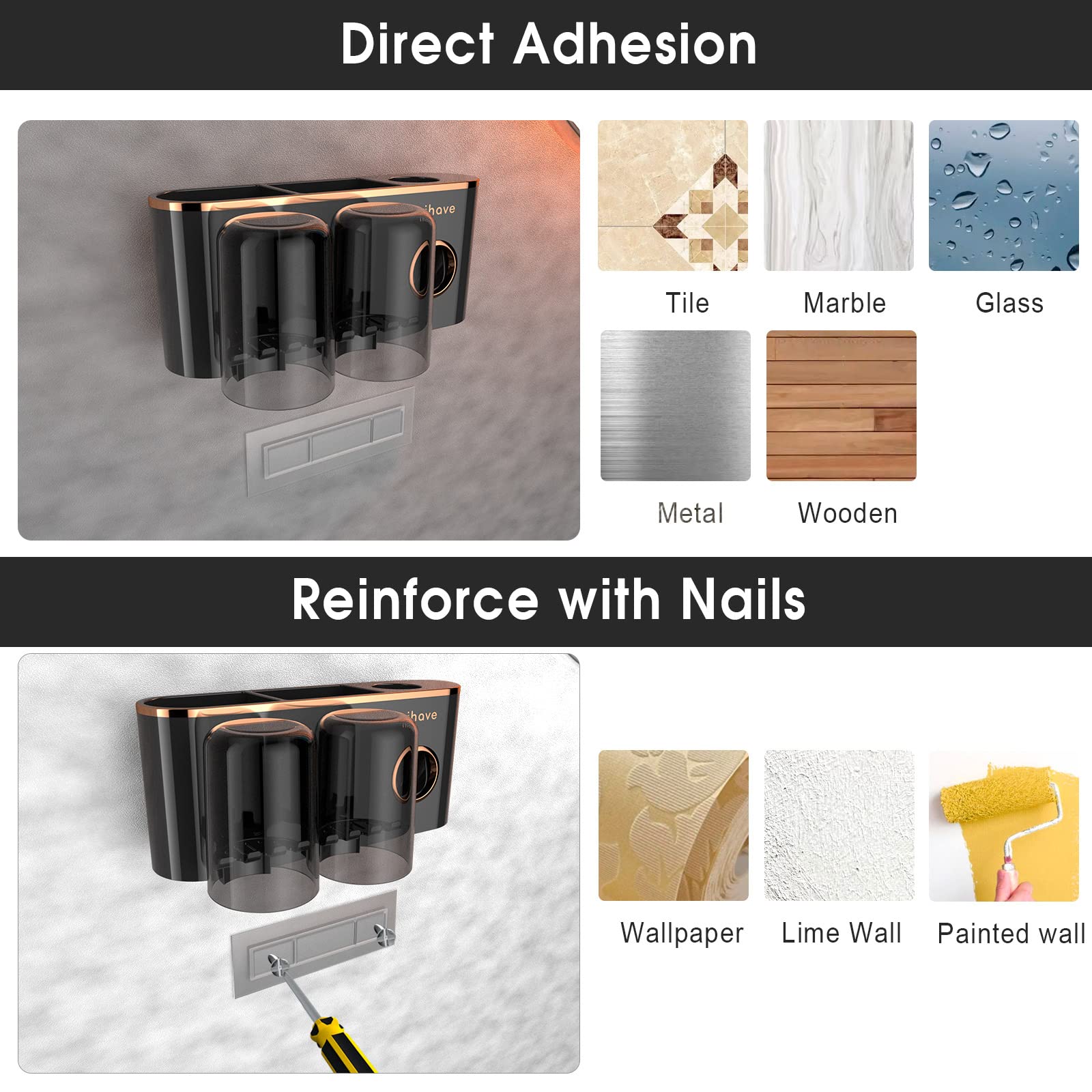 • Multifunction: This toothbrush holder bathroom organizer comes with a toothpaste dispenser, so you can easily squeeze toothpaste without wasting it. The wall-mount toothbrush holders with upside-down cups are dust-proof and waterproof.