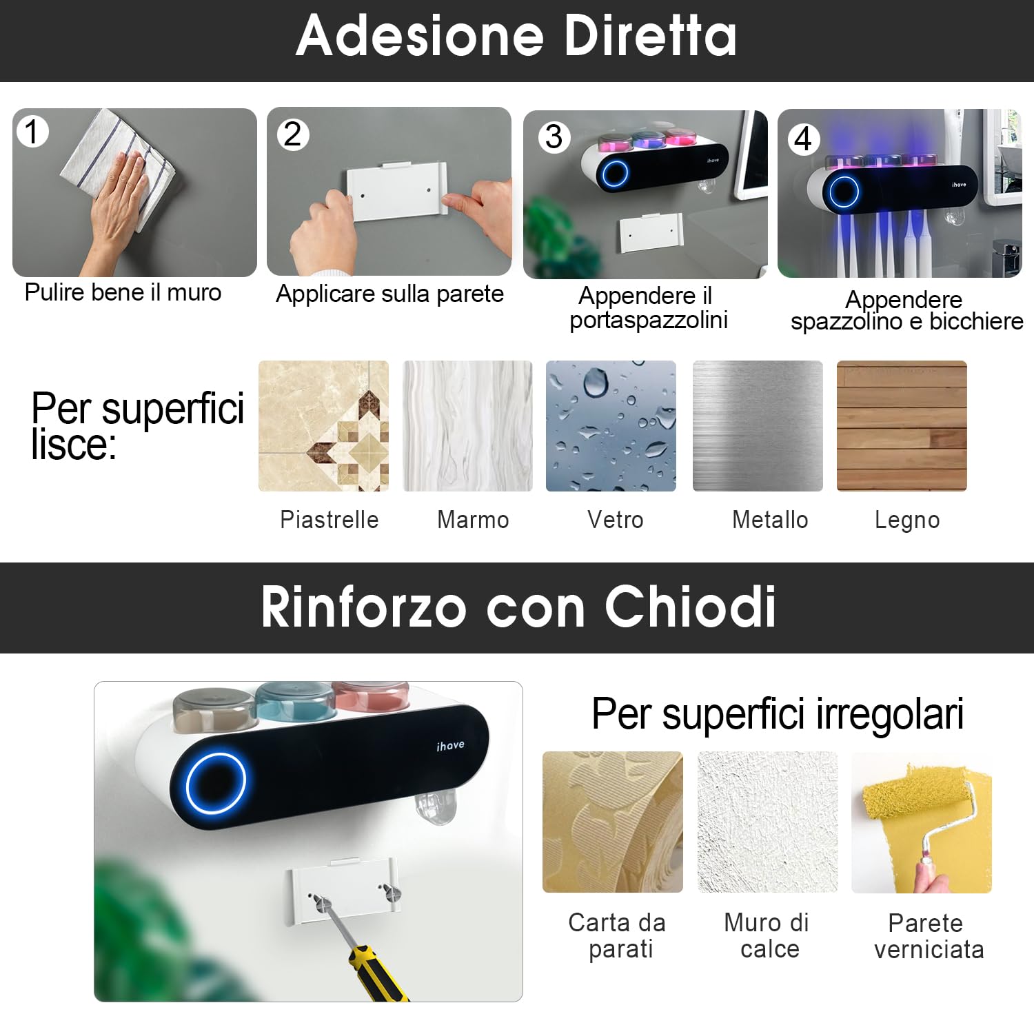 • Powerful UV Disinfection: The iHave toothbrush sanitizer and holder utilizes advanced UVC+UVA dual-band technology to achieve a disinfection rate of up to 99.99%. This uv toothbrush sanitizer effectively eliminates bacteria, ensuring your toothbrush is clean and hygienic.