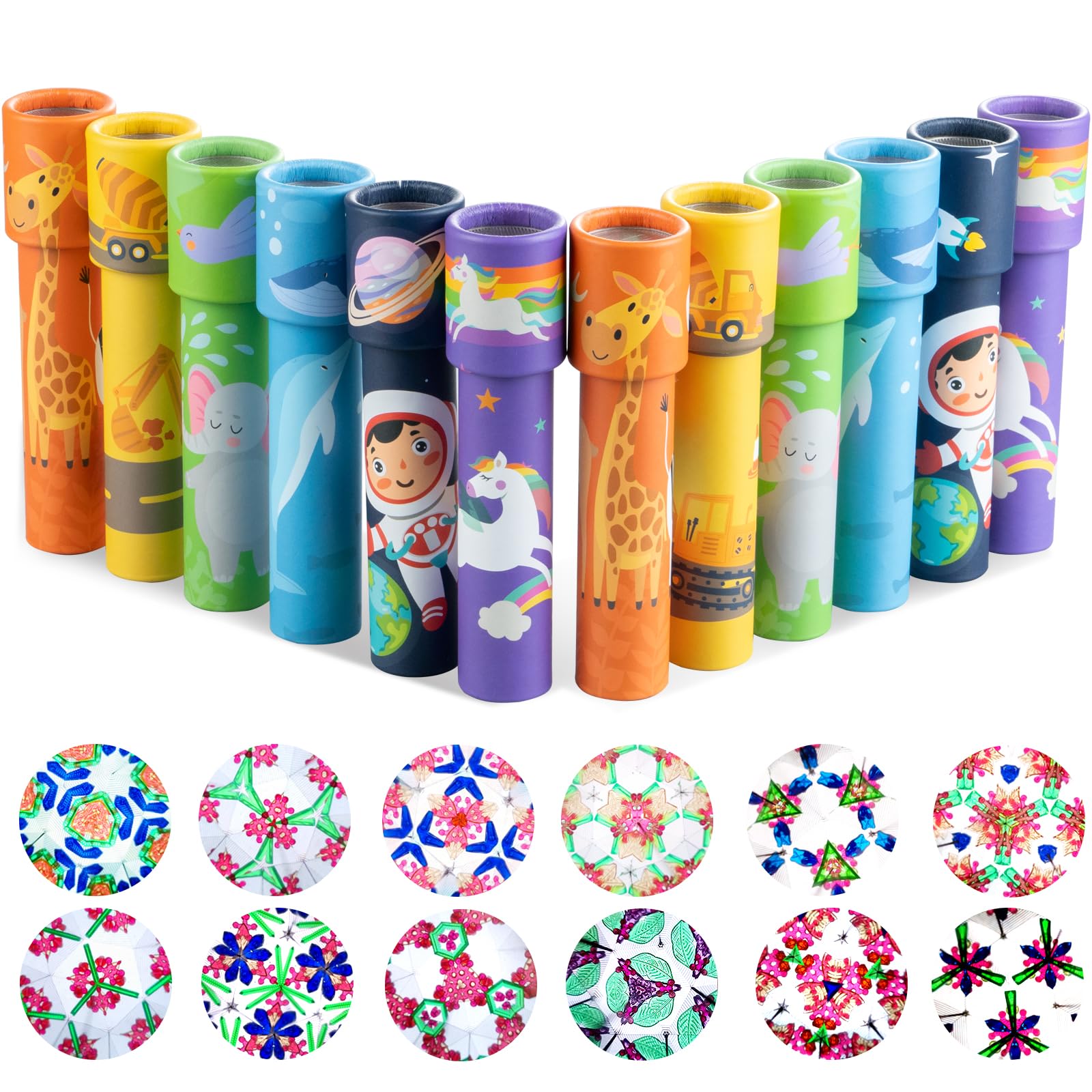 • [Great Gift Choice]: This 12-unit kaleidoscope set makes perfect return gifts and party favors for kids' birthday parties. They're also excellent stocking stuffers and goodie bag fillers for Christmas, as well as school carnivals prizes and classroom gifts.