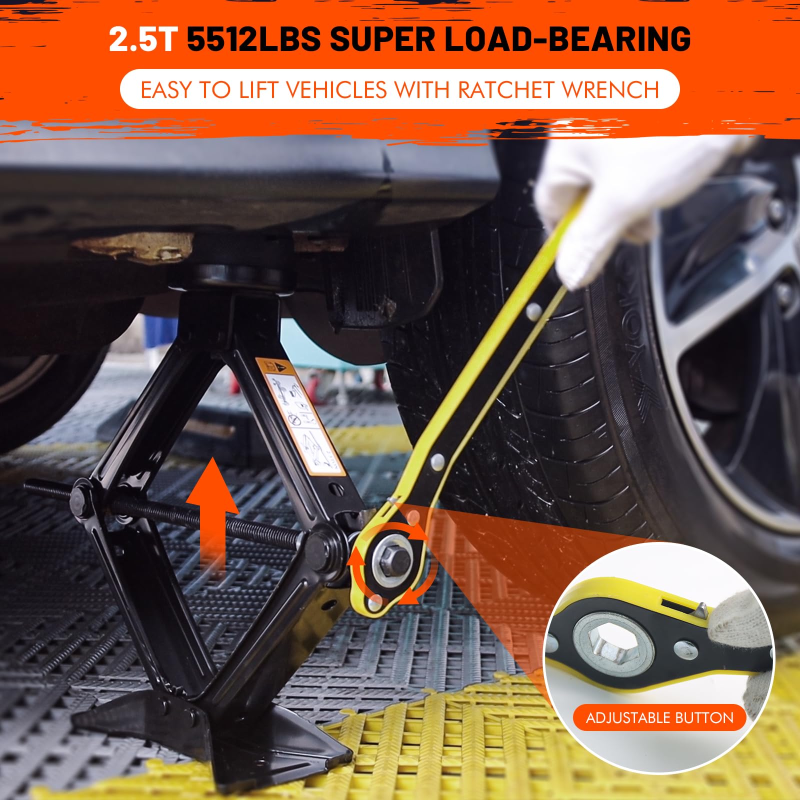 • 【Jack Lift Capacity】Maximum lifting weight 2.5 Ton (5512 lbs), This Car Jack Lifting Range from 5.1' (13cm) to 16.79'(43cm). The scissor jack provides a wider range to reach under low chassis sedans or elevate high-body SUVs effortlessly.