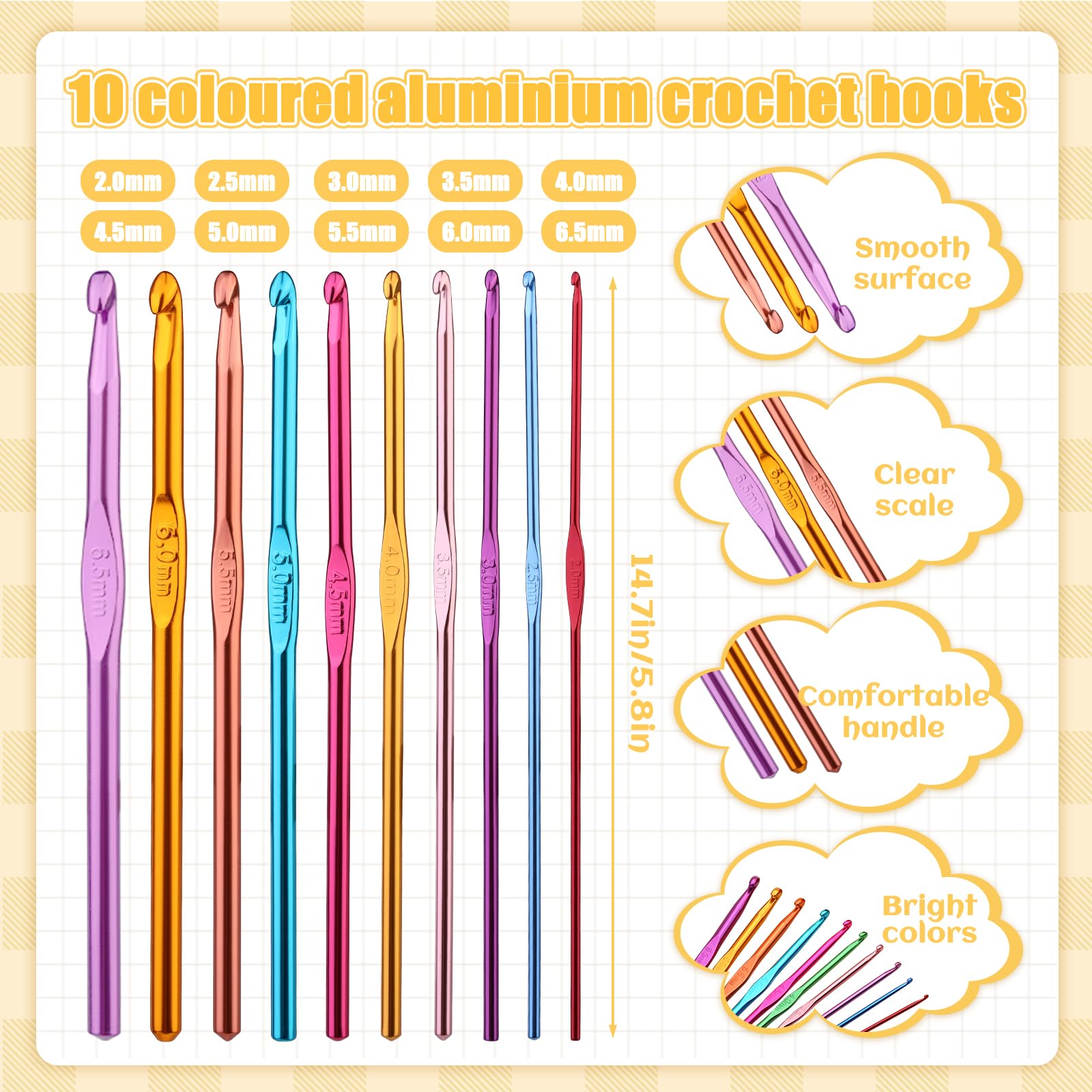 • Smooth Crochet Hooks Complete Set: Smooth Crochet Hooks glide effortlessly, produce clean finish projects, and avoid snagging splitting yarns. A complete crochet set can meet your different demands in crocheting.