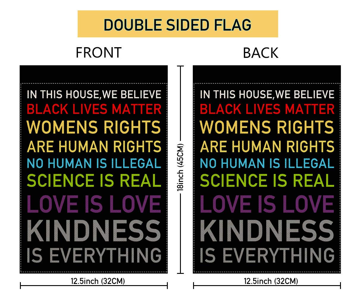 Details: In This House, We Believe Small Garden Flag Vertical Double Sided 12.5 x 18 Inch Burlap Yard Outdoor Decor