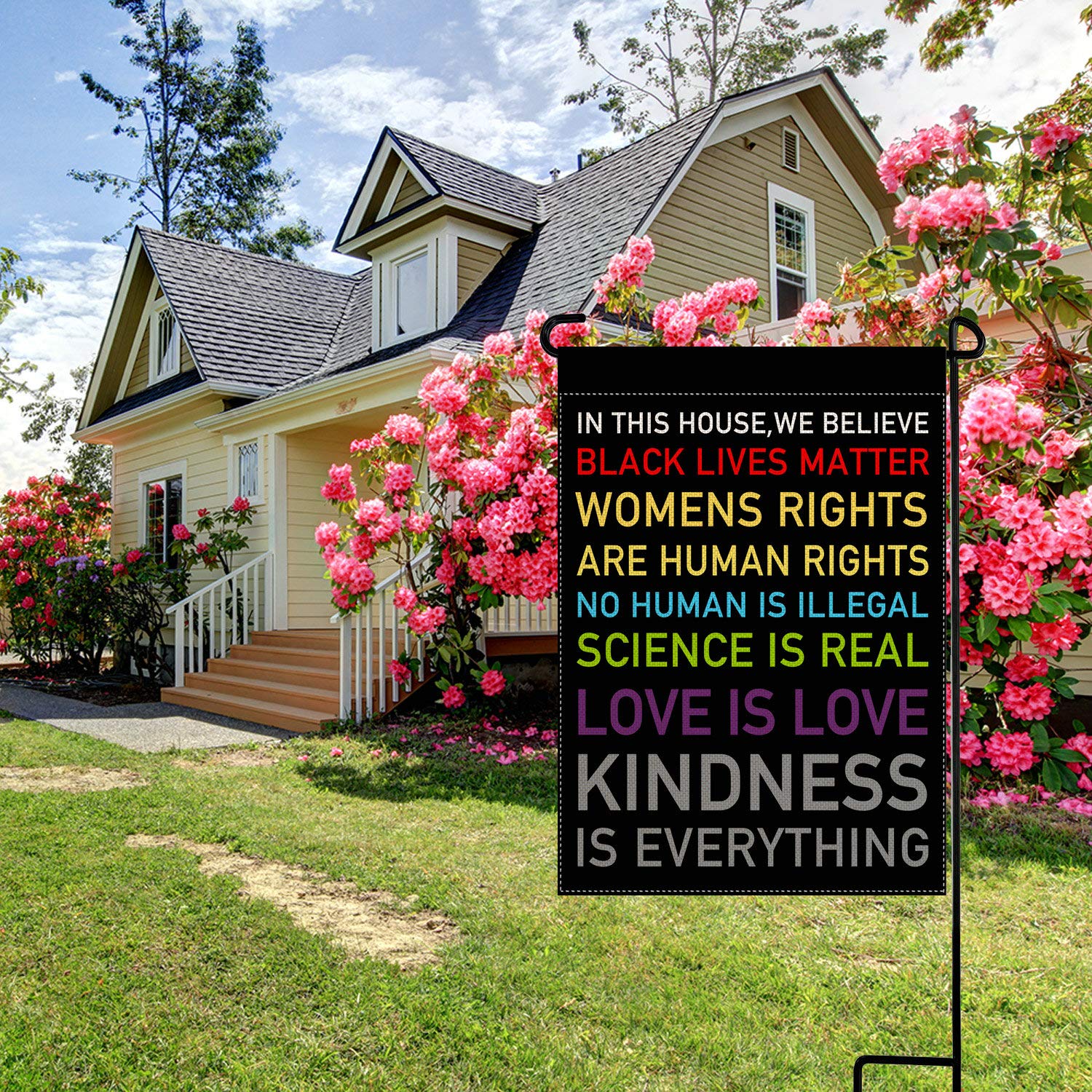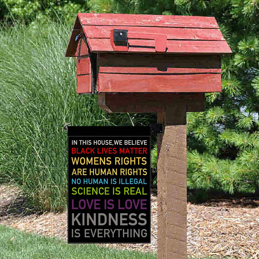 FLAG SIZE: This pingpi "In This House, We Believe" Garden Flag is the small, Mini Garden size (12.5"W x 18"H).