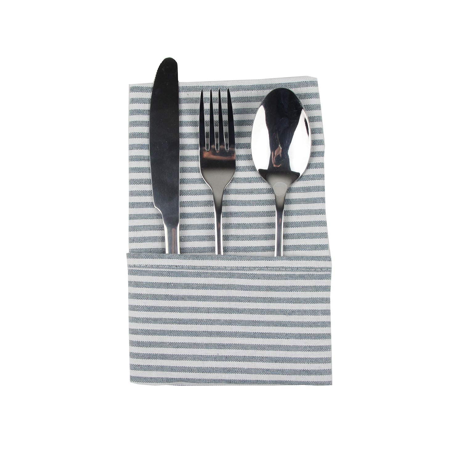 INFEI Plain Striped Cotton Linen Blended Dinner Cloth Napkins - Set of 12 (40 x 30 cm) - for Events & Home Use (Ocean)