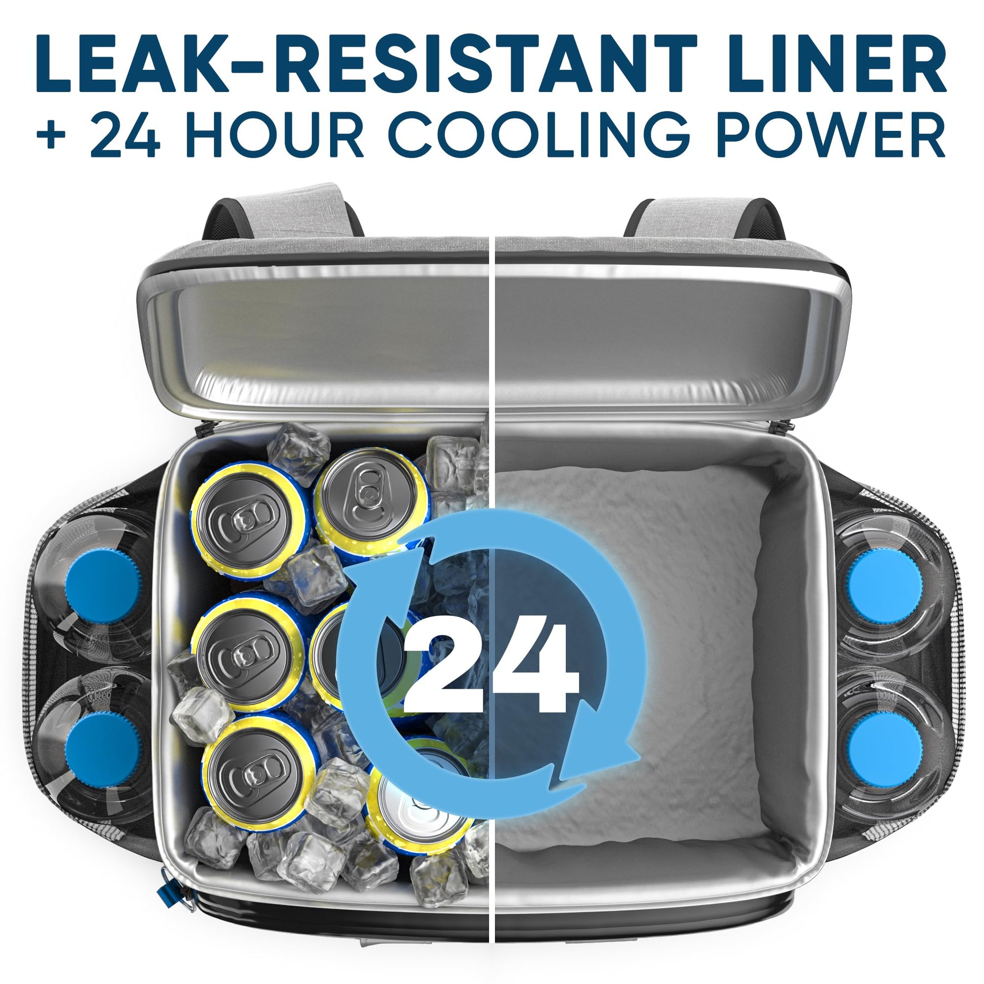 • LEAK-RESISTANT COOLING PERFORMANCE: Thick insulation and a PEVA liner help keep food and drinks cold for up to 24 hours while resisting leaks. This insulated picnic backpack is ideal as an outdoor cooler or soft sided cooler on the go