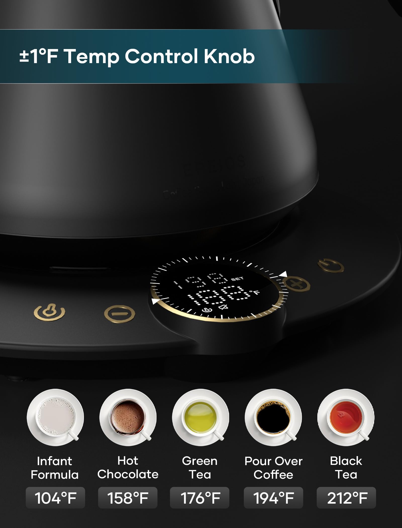• ±1℉ Precise Temperature Control - Enjoy perfectly heated water every time. The smart base automatically adjusts power, keeping the temperature within ±1℉ of your target.