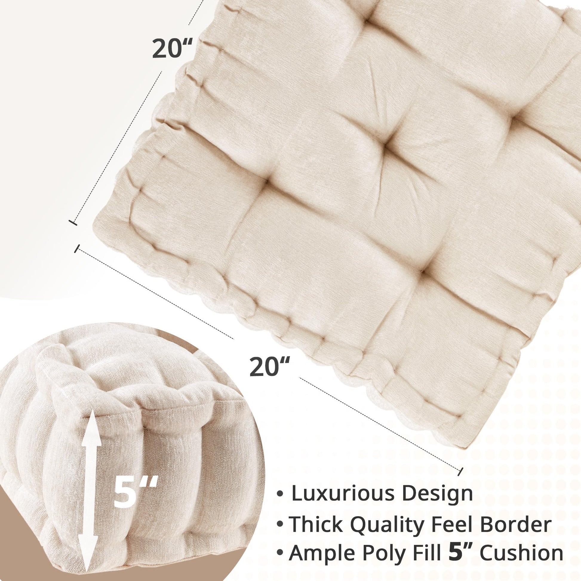 Intelligent Design Azza Floor Pillow, Large Cushions Sitting for Adults, Floor Pillow for Meditation or Yoga, Lustrous Chenille Tufted with Scalloped Edges for Bench/Chair Cushion, 20"x20"x5" Ivory
