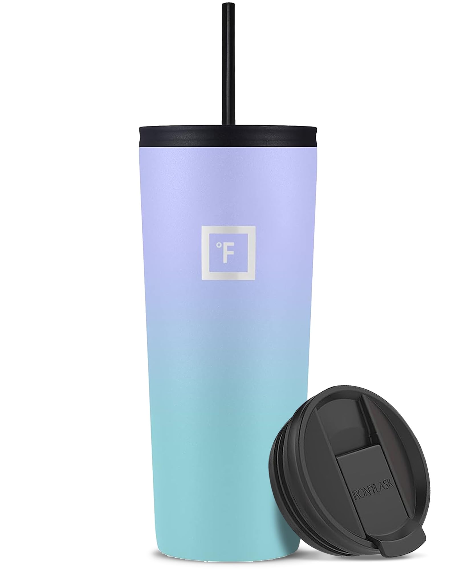 IRON °FLASK Classic Tumbler - Vacuum Insulated Stainless Steel Water Bottle, Double Walled, Drinking Cup, Insulated Travel Mug (Cotton Candy, 24 oz Solid Lid)