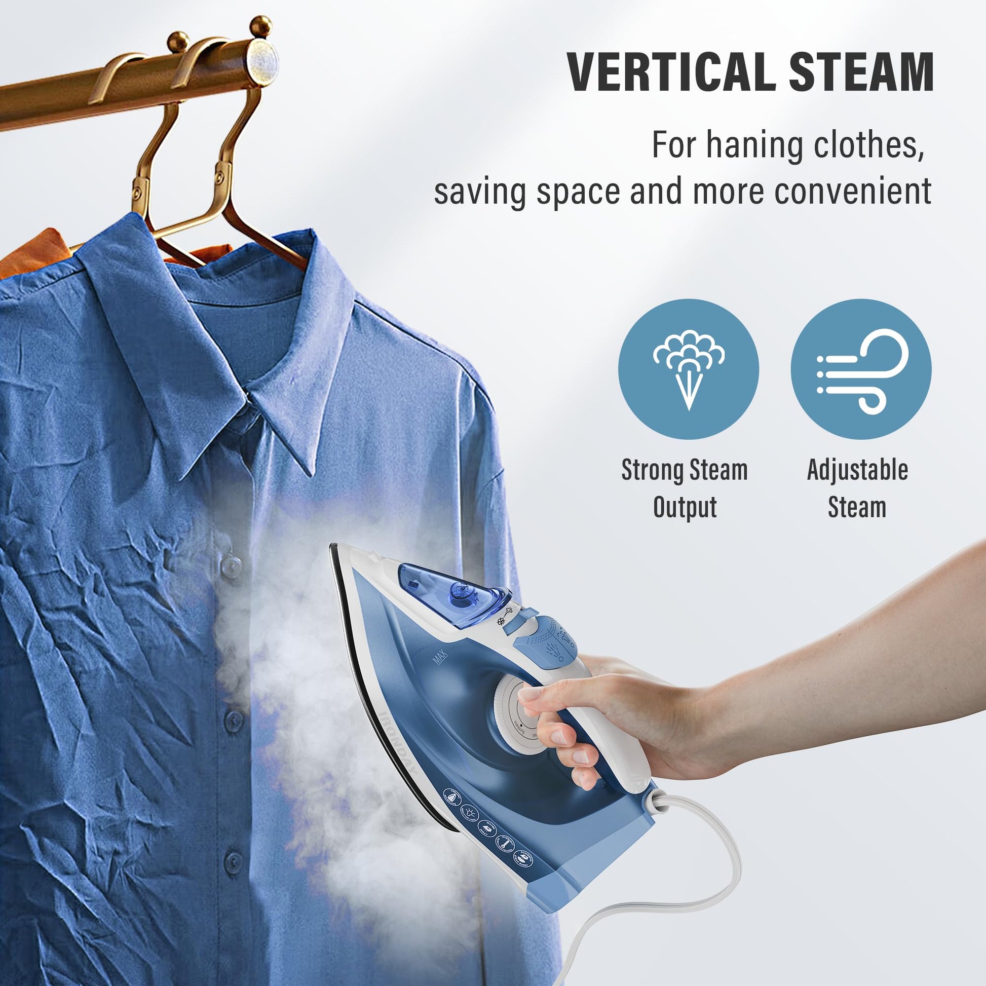 • [Efficient Wrinkle Removal] The iron for clothes features powerful burst steam, adjustable steam and water spray functions to easily remove wrinkles from clothes.
