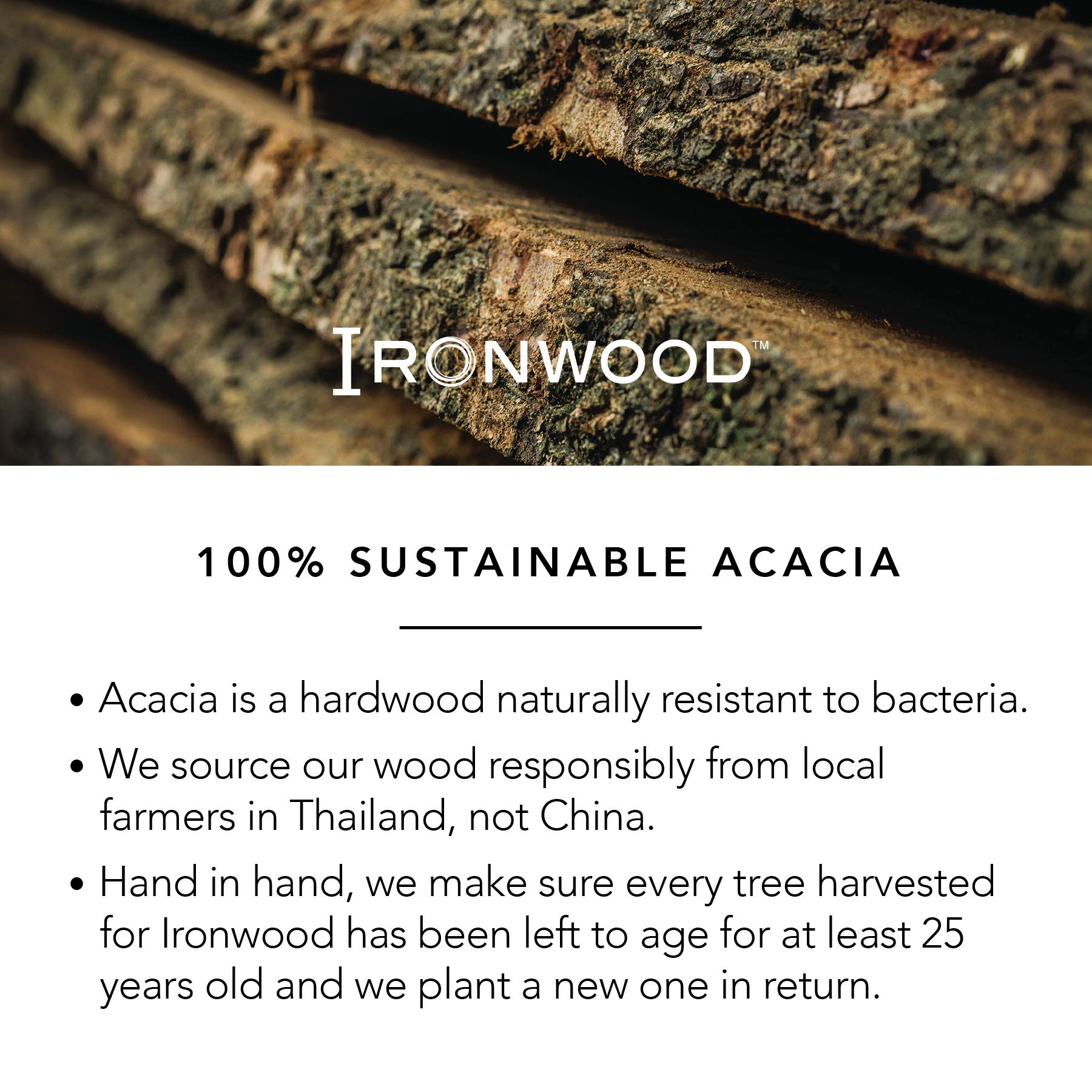 • PREMIUM ACACIA WOOD known for its rich colors with beautiful contrasting patterns and variations from light to dark acacia wood.