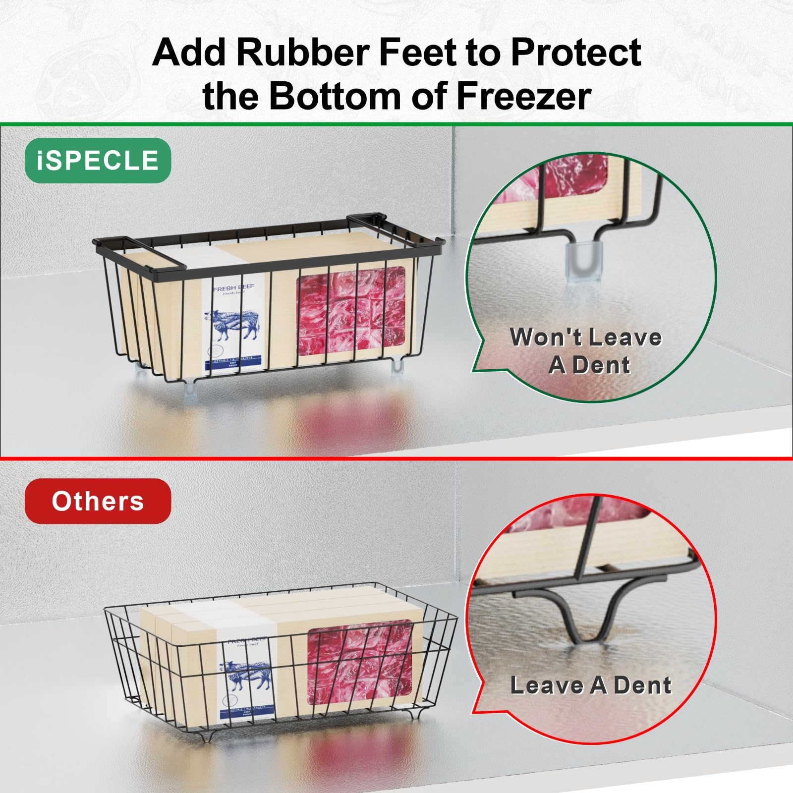 • [Hold Heavier Food Not Deformed] The 20% thicker black coated wireline and rounded edges of the freezer storage can hold more heavy frozen food and prevent scratching or tearing of bags or wrapping; you can see what's in the bins at a glance even the bottom bins, save you time to find food