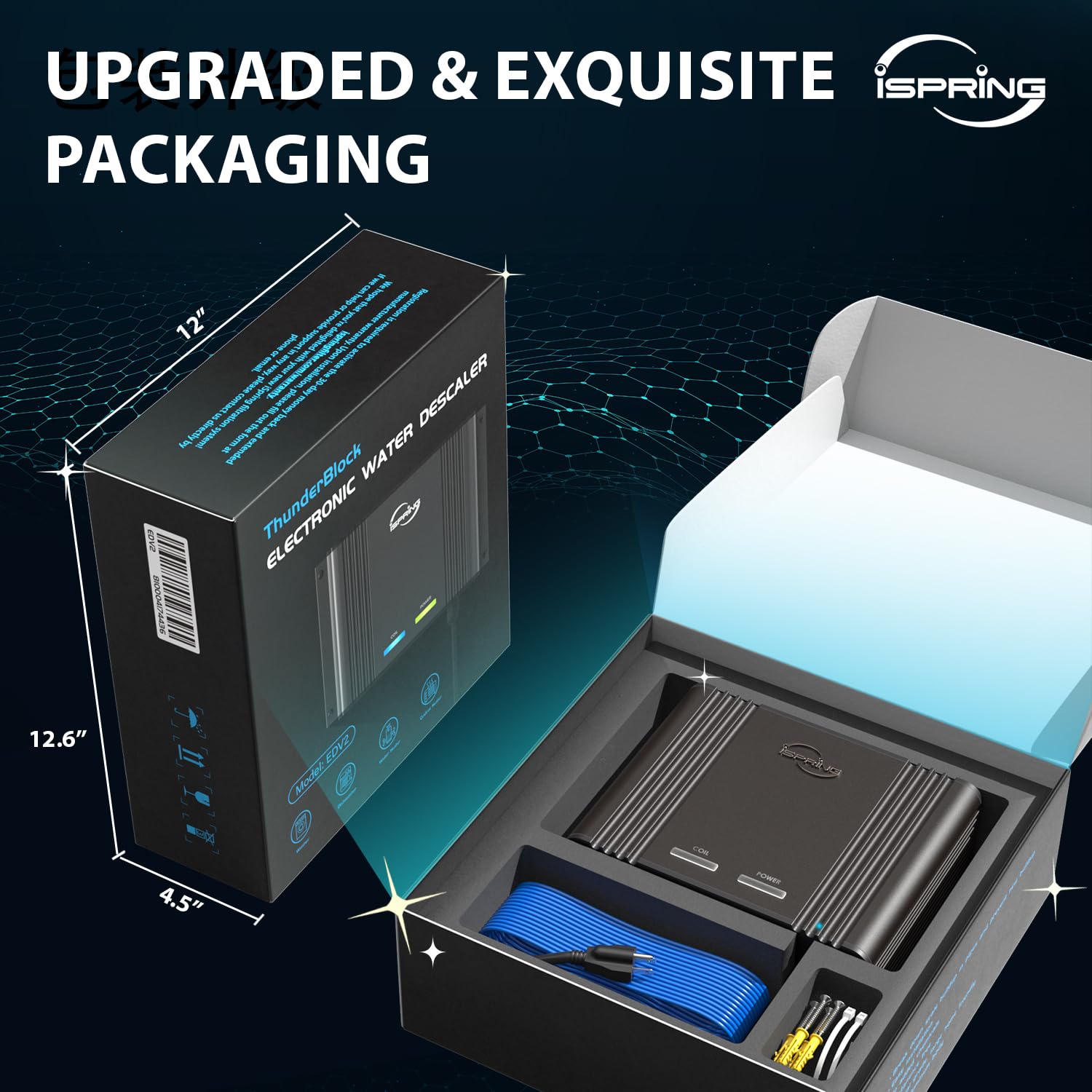 • [Revolutionary Water Treatment] Experience unparalleled water quality enhancement with iSpring EDV2 electronic descaler. Say goodbye to hard water woes without resorting to chemicals, salt, or tedious maintenance. Witness a noticeable improvement in just 12 weeks.