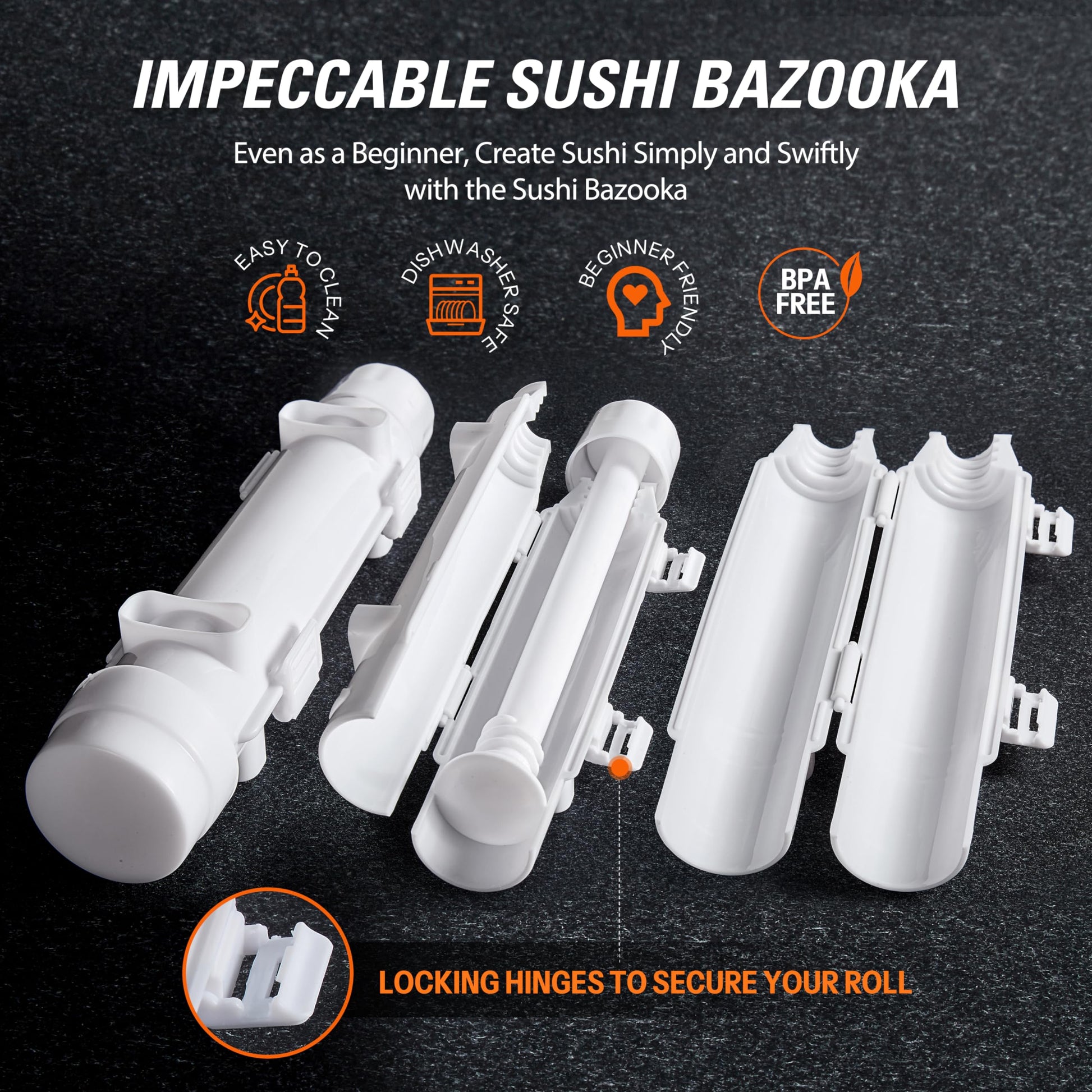 • 【Packing List】Sushi Bazooka, 2pcs Bamboo Mat, Paddle, Spreader, Sushi Knife, 4pcs Bamboo Chopsticks, 4pcs Chopsticks Holder. This kit has everything you need to make sushi in just a couple of minutes.