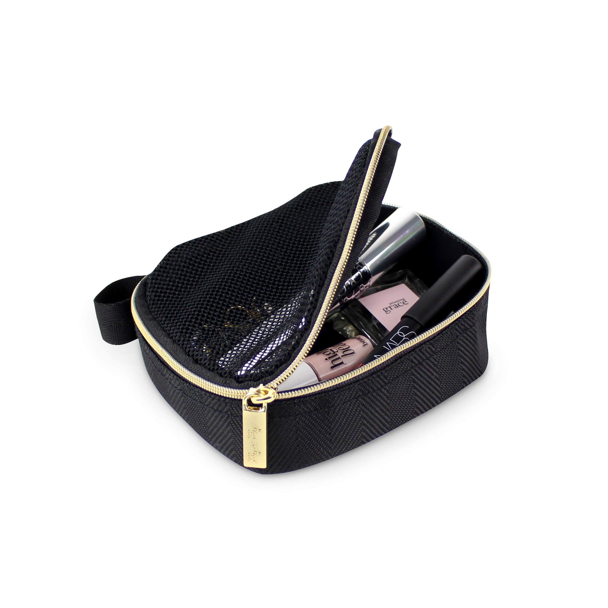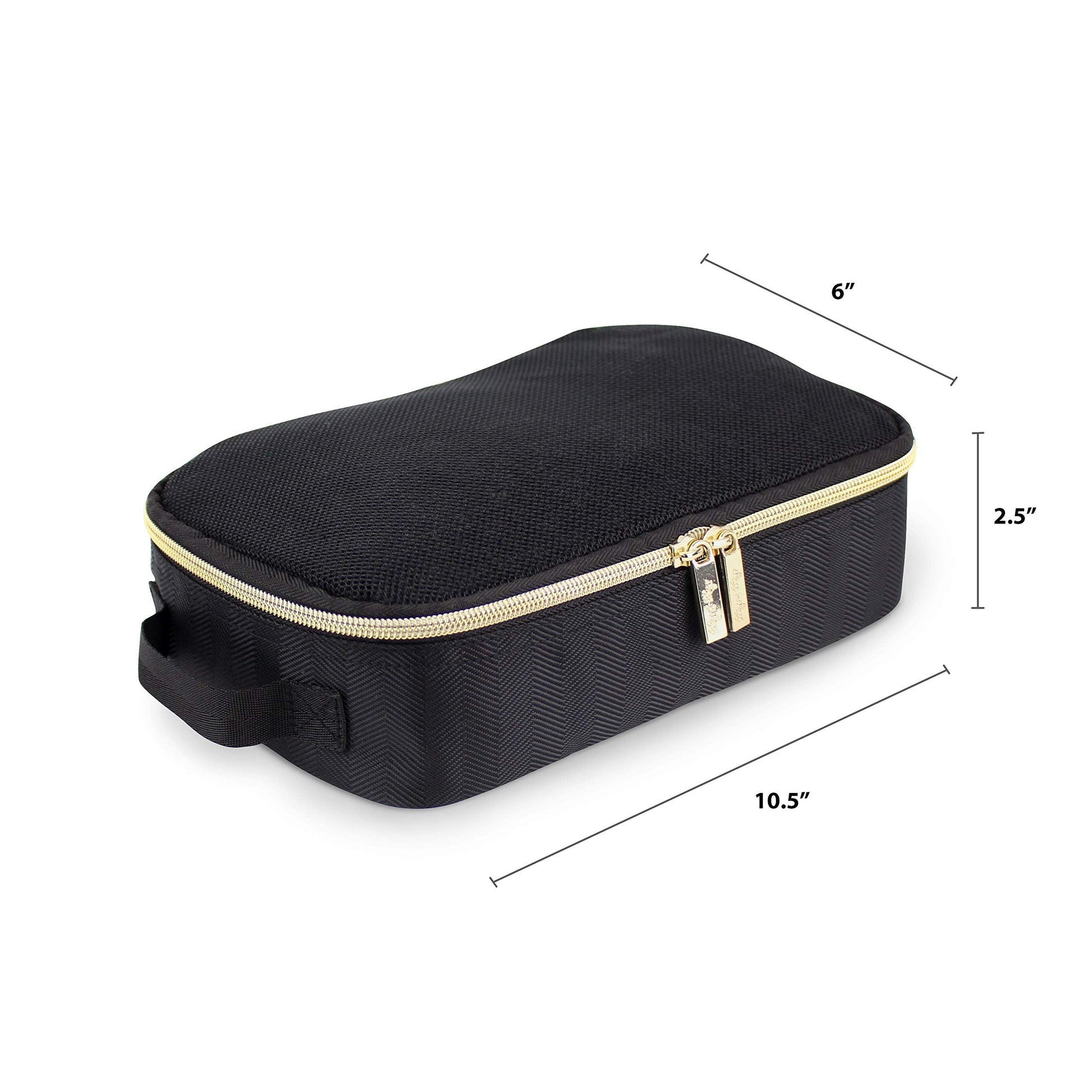 Itzy Ritzy Packing Cubes For Travel – Set of 3 Packing Cubes or Travel Organizers; Each Cube Features a Mesh Top, Double Zippers and a Fabric Handle (Black with Gold Hardware)