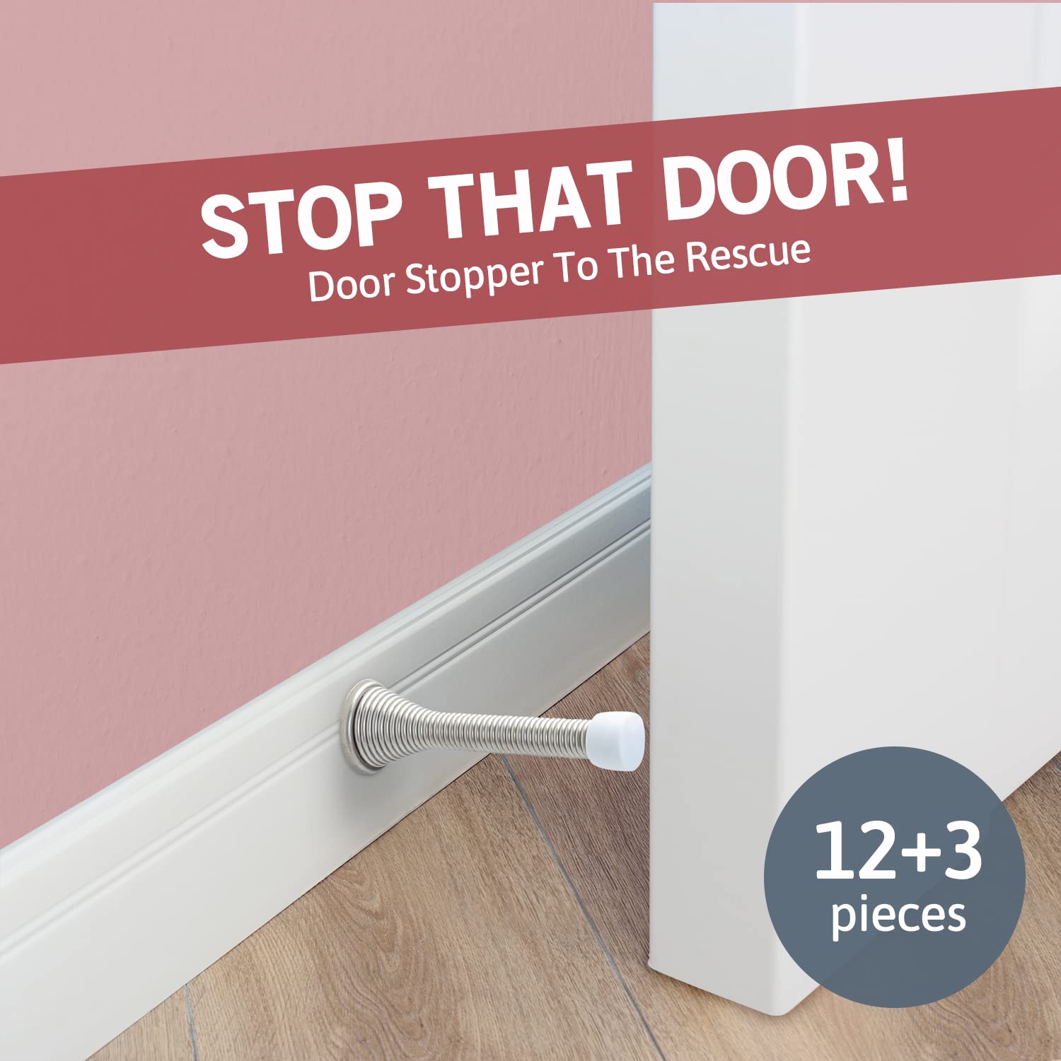 • Great value for the price of one - Each set includes 12-pieces + 3 Free Jack N’ Drill flexible door stops. With one pack, you can use it in your office, bedroom, bathroom, kitchen or in your living room doors. No more mismatched door stops.