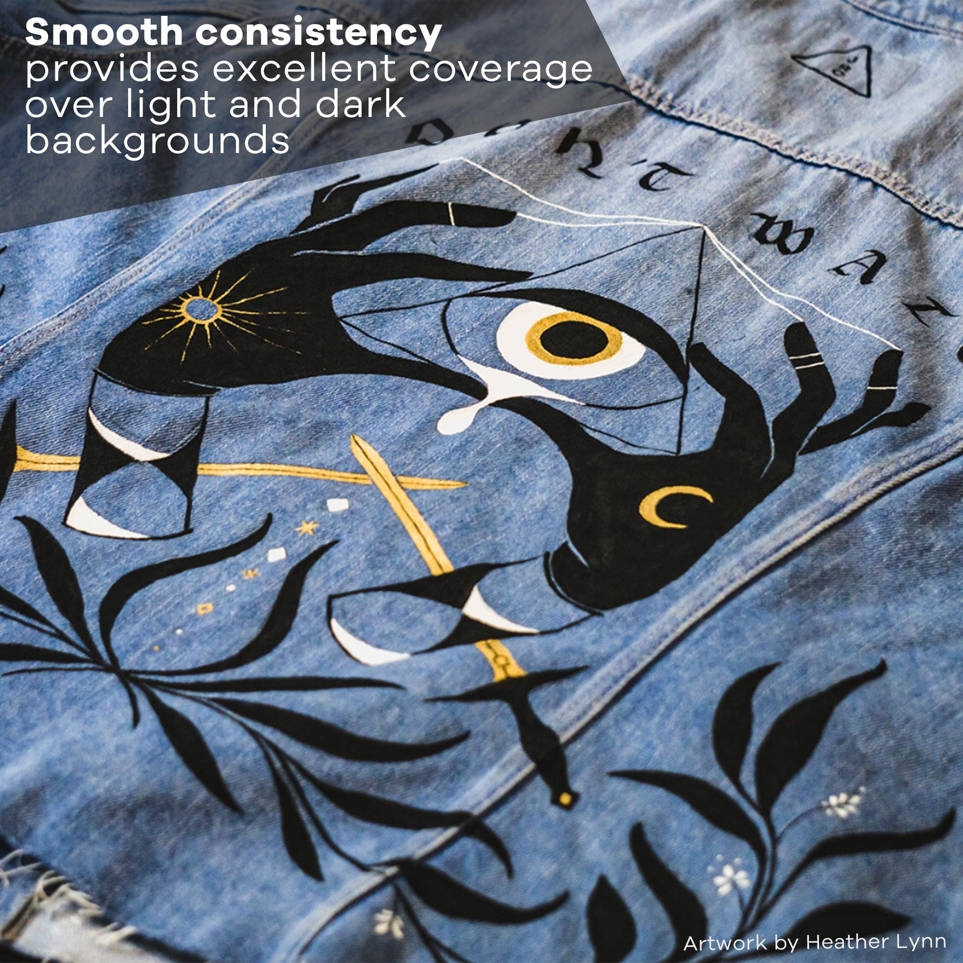• Smooth Application - The light-bodied consistency of this metallic paint for metal and fabric is completely opaque. Create bold designs on both light or dark backgrounds or mix with other Jacquard products for different levels of transparency