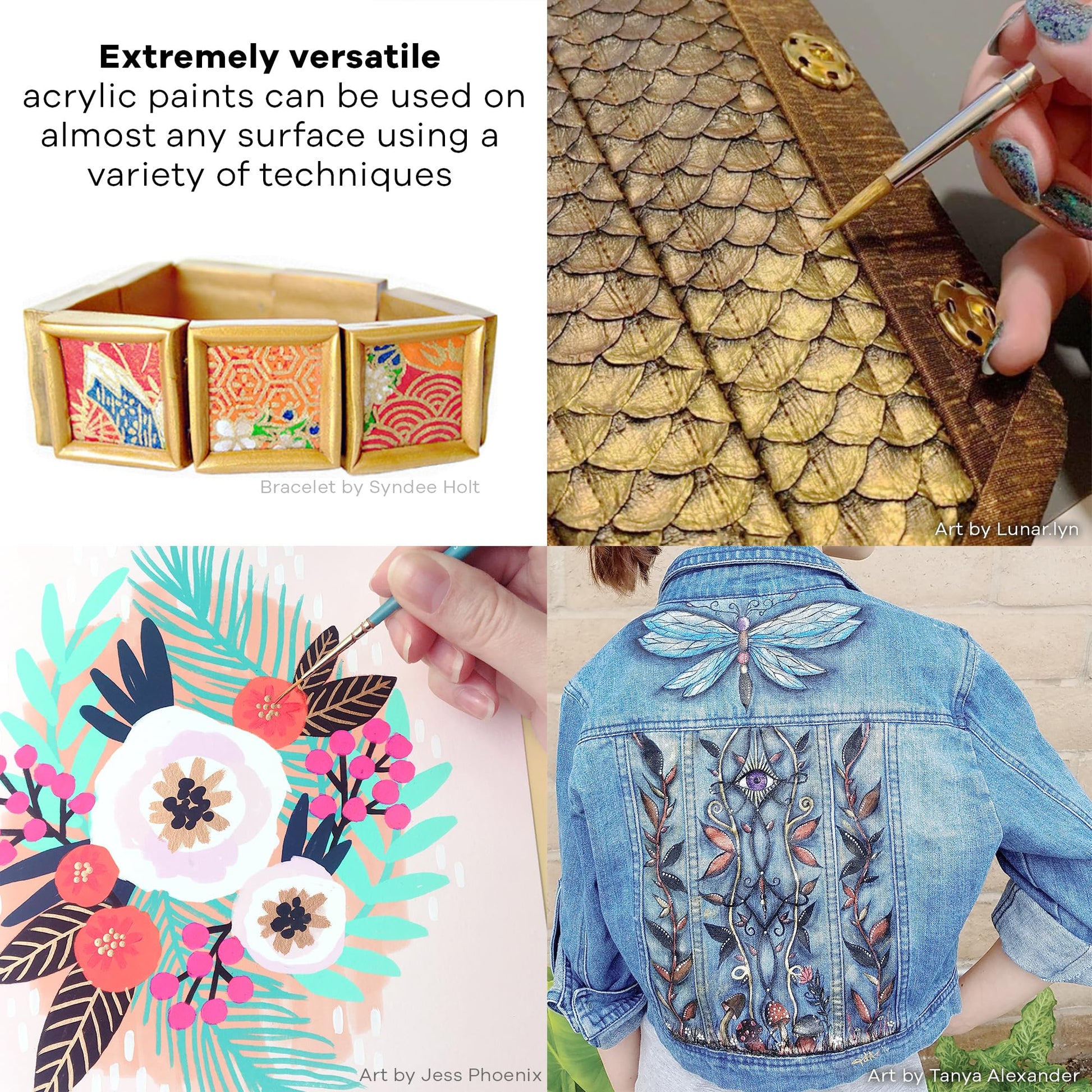 • Durable & Long Lasting - Acrylic shimmer paint won't flake, crack, or peel on flexible surfaces such as fabric, leather and canvas and is lightfast and colorfast, able to stand up to washing and direct sunlight. These colors will stay bright and vibrant for years to come