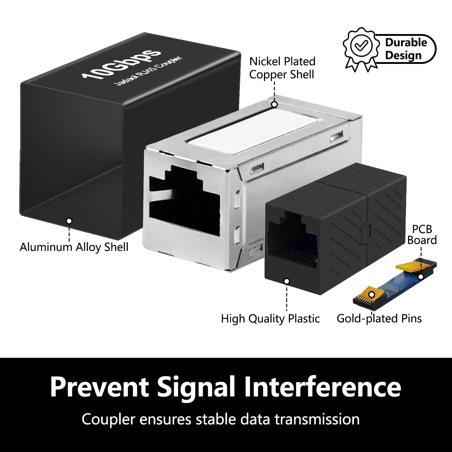 • 10Gbps High Speed - The speed of the RJ45 coupler is up to 10Gbps, downward compatible with 1000Mbps/ 100Mbps/ 10Mbps. Larger downloads, maximum velocity, and no more interruption. Plug and Play