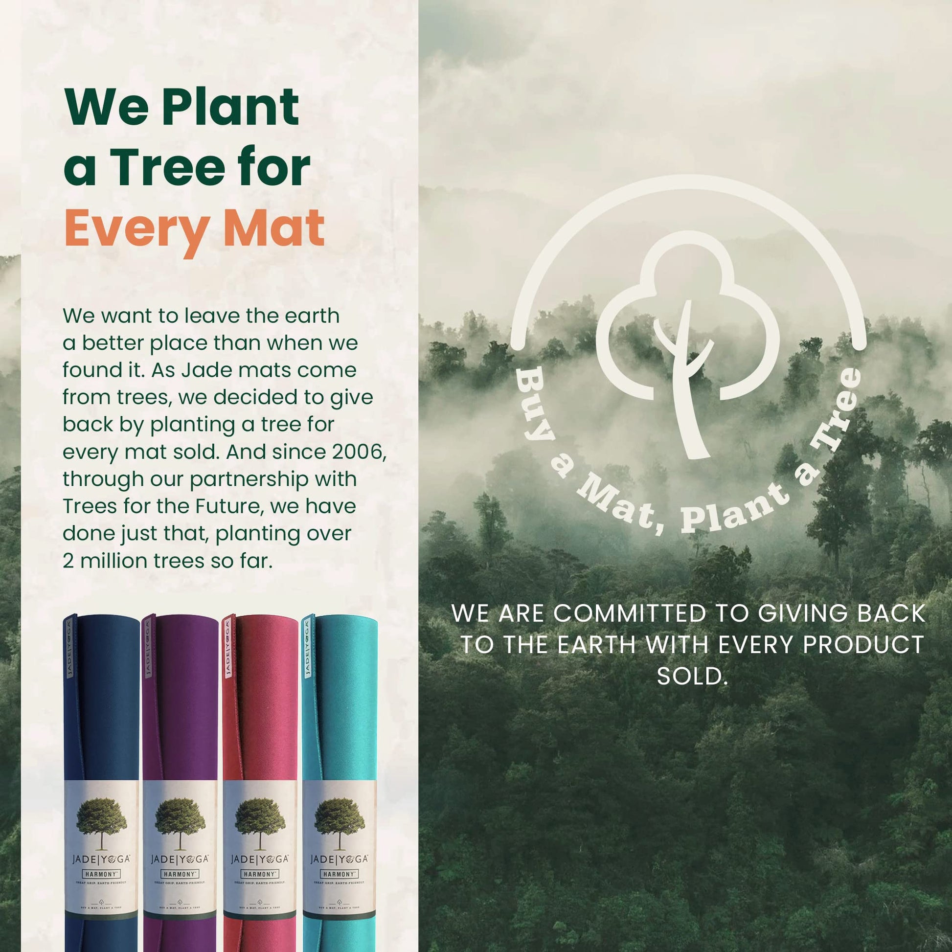 • BE THE CHANGE WITH JADEYOGA: When you choose JadeYoga, you're not just investing in a premium yoga mat; you're actively contributing to positive change. With every mat sold, we are dedicated to giving back to the earth. We've pledged to plant a tree for each mat purchased. Since 2006, in partnership with Trees for the Future, we have already planted over 2.5 million trees, making a tangible difference in reforestation efforts and preserving our planet for future generations.