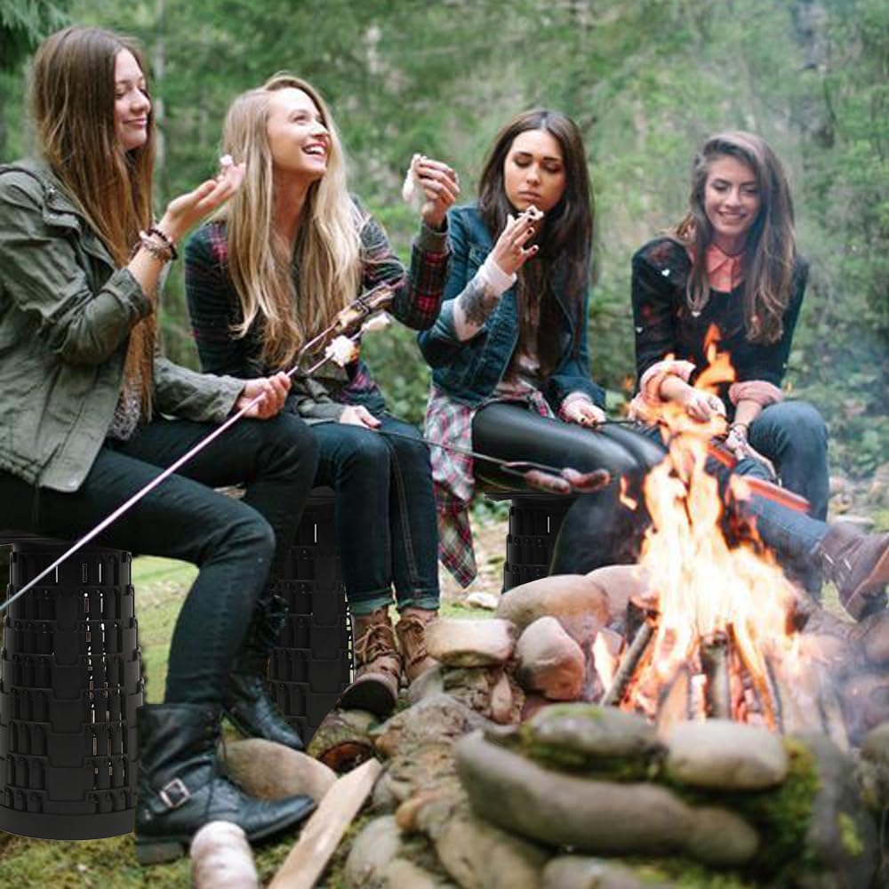 • 【FOLDABLE, RETRACTABLE】Folding camping stool easily opens and closes in just seconds and locks into place with a gentle swivel for safety and stability. Height can be freely adjusted between approximately 2.4 inches and 17.7 inches, suitable for adults weighing less than 500 pounds, perfect for gifts for family, friends and relatives.