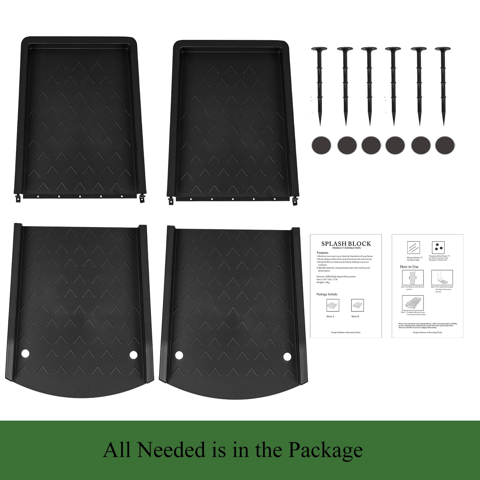 • EASY TO USE: No need for professional installation! Simply place the splash block directly under the gutter downspout and adjust the angle to ensure it slopes down and away from, not toward your house