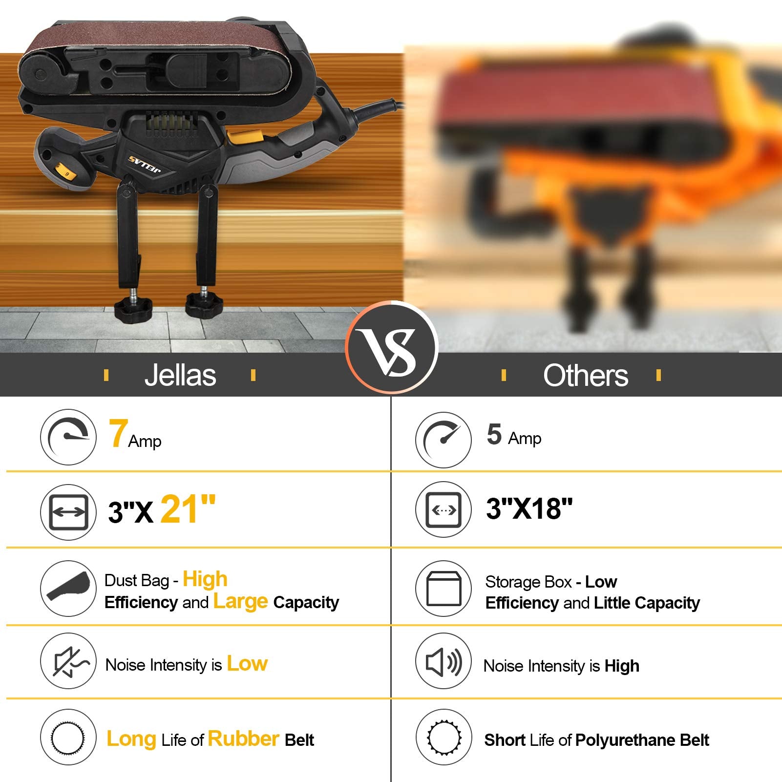 Jellas 7Amp Belt Sander 3 ร— 21-Inch with Dust Bag, Bench Sander with Variable-speed Control, 2 in 1 Vacuum Adapter, 10 Feet (3 Meters) Length Power Cord - BS750