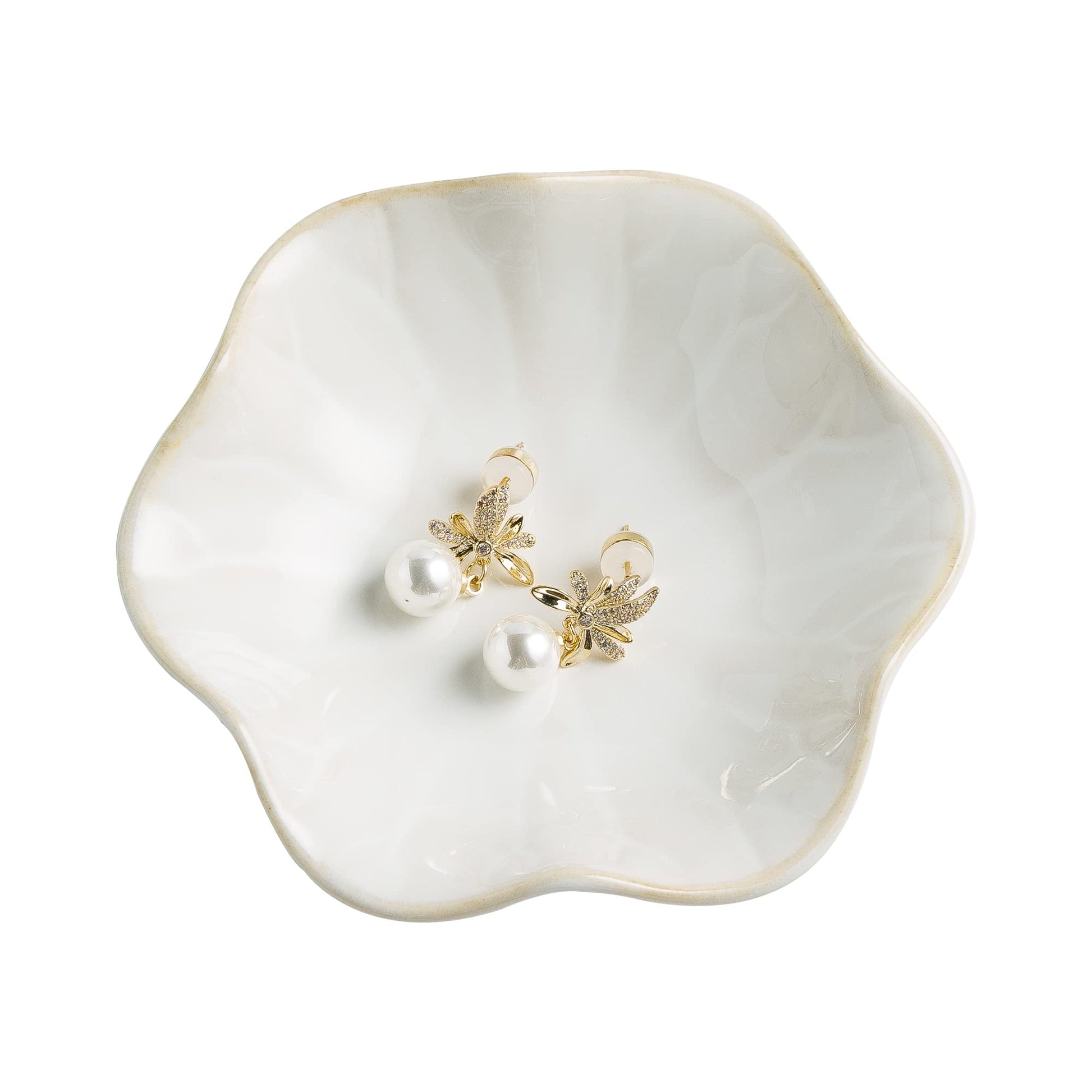 Jewelry Dish Tray, Ring Dish, Ceramic Trinket Tray, Key Bowl, Decorative Plate, for Friends Sisters Daughter Mother (Milky White)