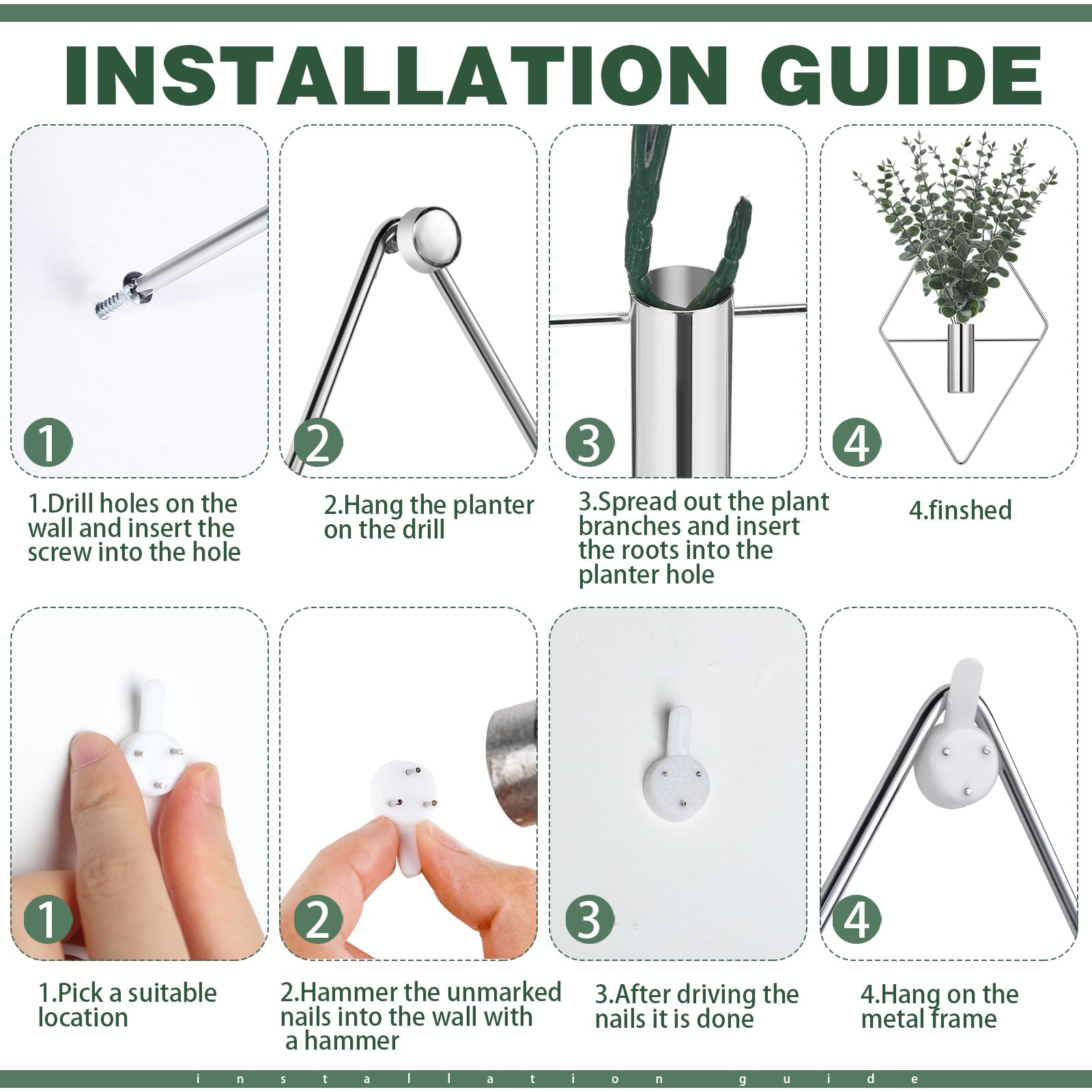 • Simple and Generous: the geometric wall hanging vase is designed in triangle and rhombus shape, coordinate with chrome sliver color, the collision of metal iron and flower, its simple design let it look elegant and generous, and is suitable for a variety of decoration styles, such as modern style, minimalist style, rustic style and more