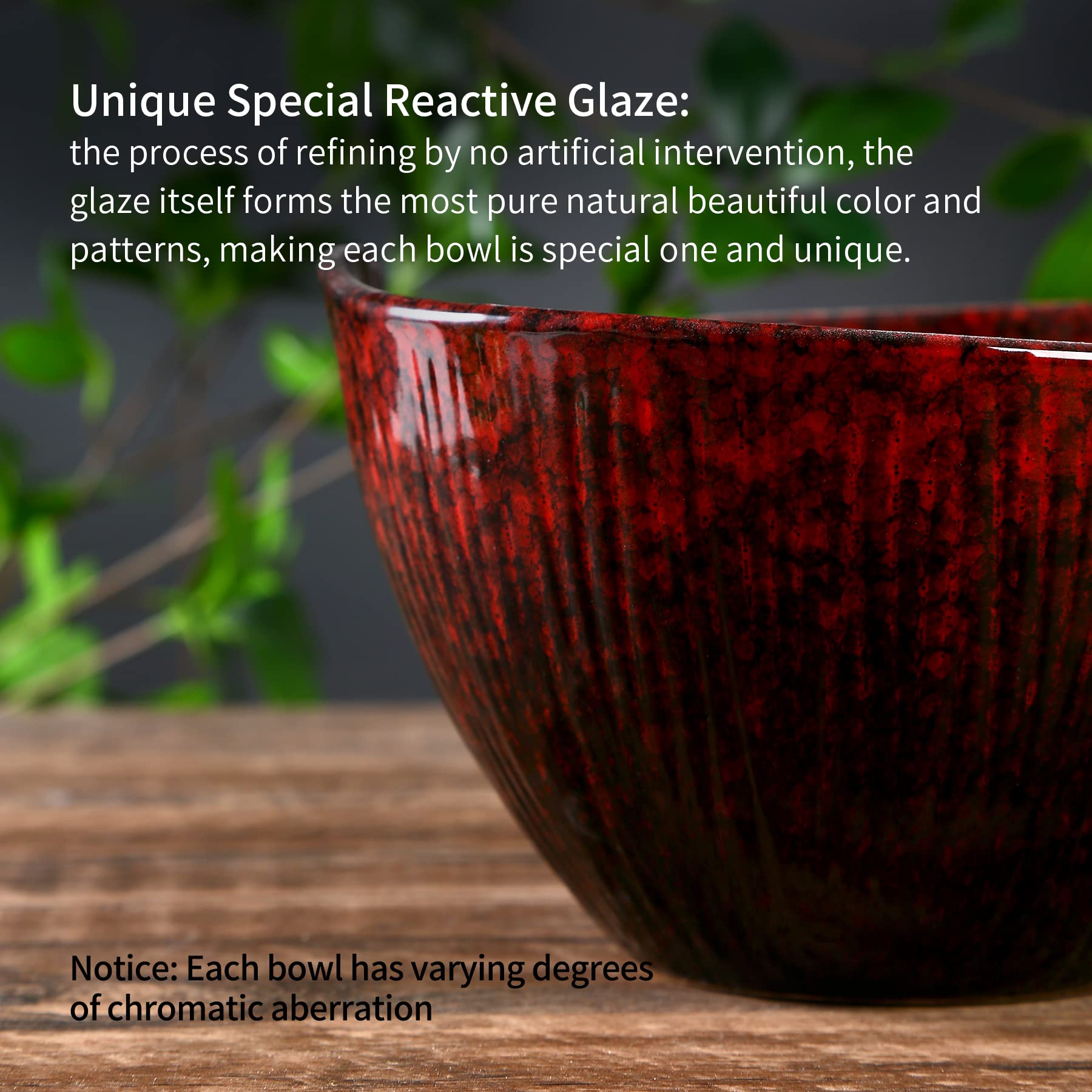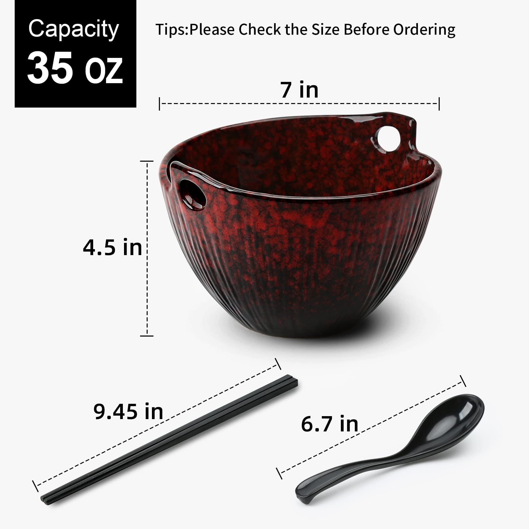 JH JIEMEI HOME Ramen Bowl with Chopsticks and Spoons, Ceramic Set of 2, Dishwasher Safe for Pho Udon Soba Noodle Salad Pasta, Special Reactive Glazed Crimson Bowls Set