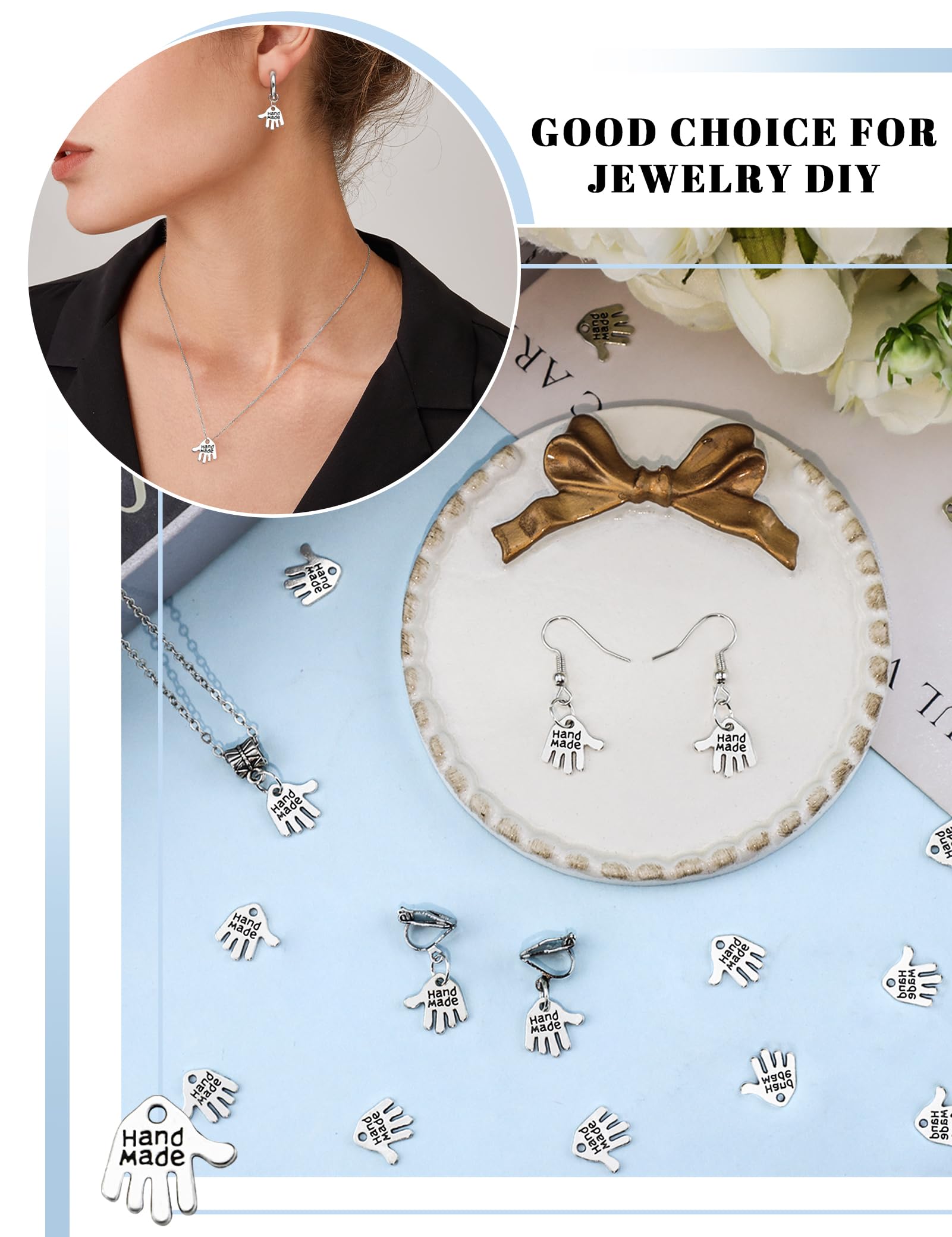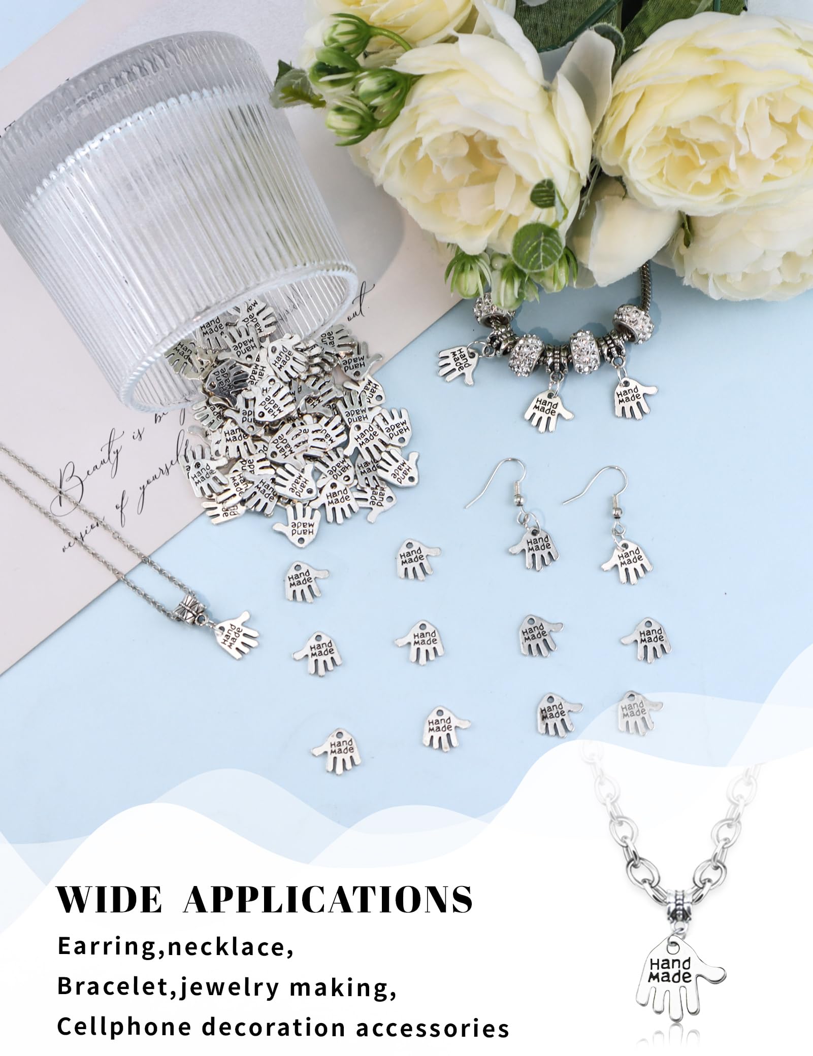 JIALEEY 100PCS Hand Shaped Charms Hand Made Tag Signs Charms Carved Silver Tone for Fashionable Jewelry Making Charms Findings Crafting Sewing