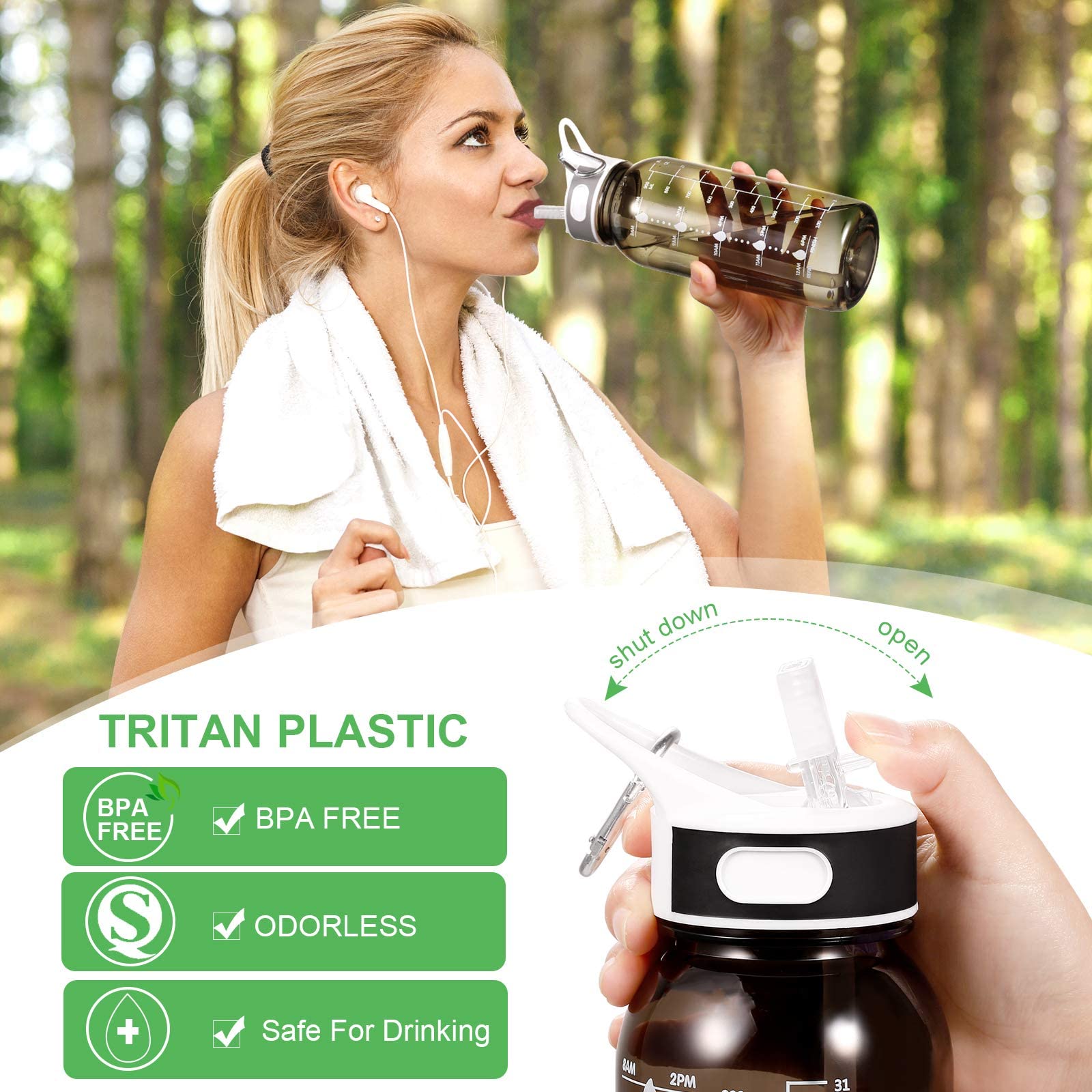 • 【Time Markings Tracker Design】High quality time reminder water bottle with convenient hourly time markers to help you boost your daily water intake.and all-day healthy hydration.