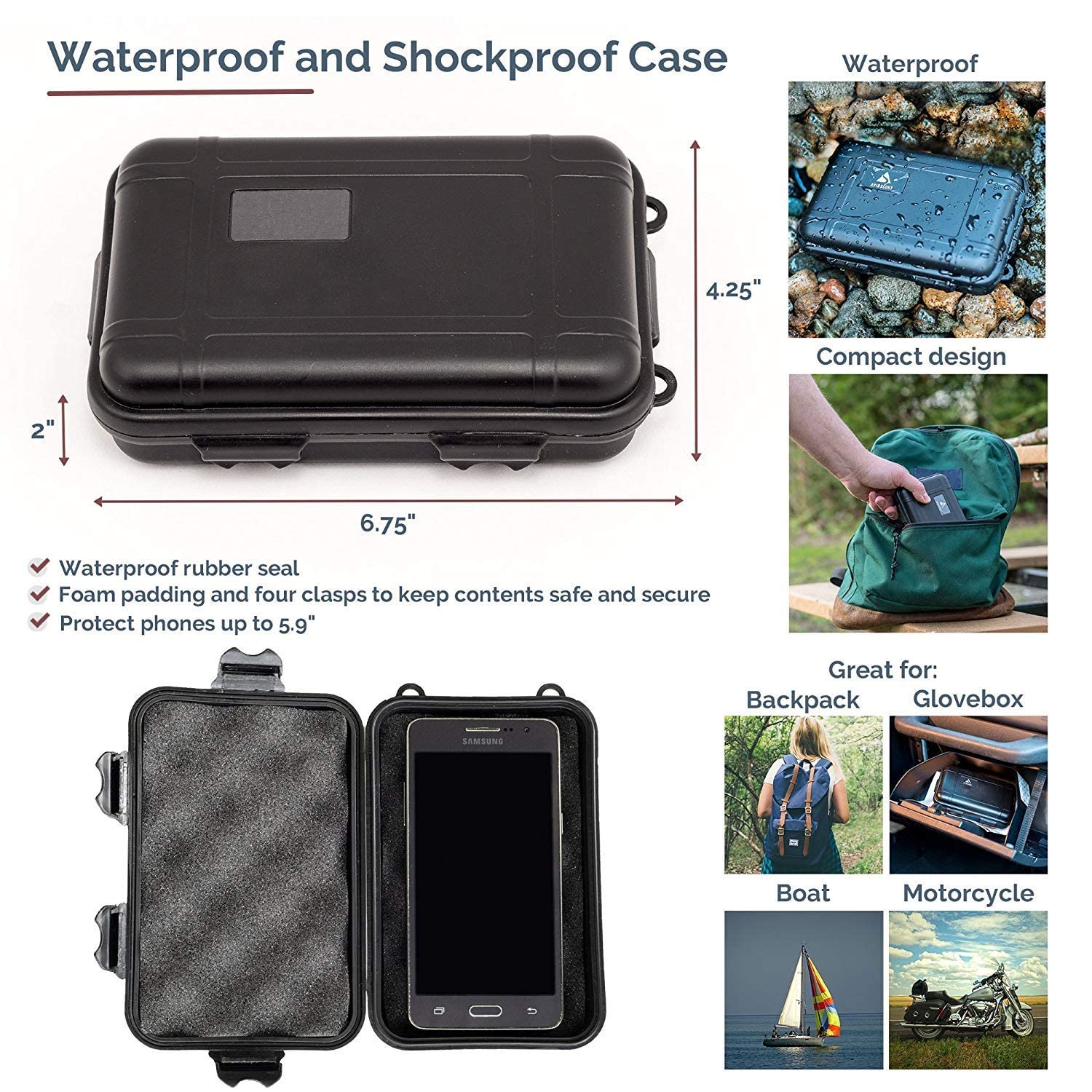 • LIGHTWEIGHT & CONVENIENT - Dimensions is 6.6 x 4.3 x 1.9 inch ( 16.8 x 11 x 5cm) and Weight only 1.11 pounds. Portable tool case, filled with sponge, waterproof and Shockproof. So easy to carry, can be placed in a backpack , cars, hiking or camping gear