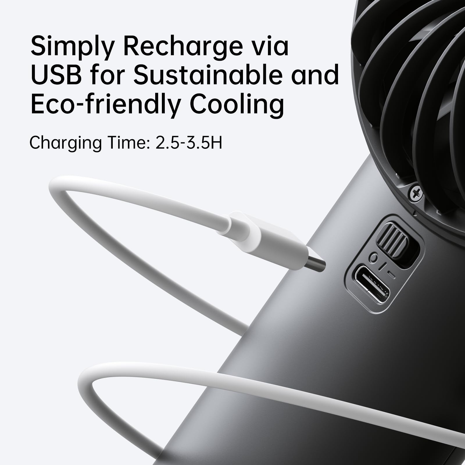 • 5000 mAh Long Battery Life: Support up to 17.5 hours of usage with a 5000 mAh battery, our handheld fan beats the competition with its outstanding battery life; Experience up to 17.5 hours of continuous cooling comfort throughout the day