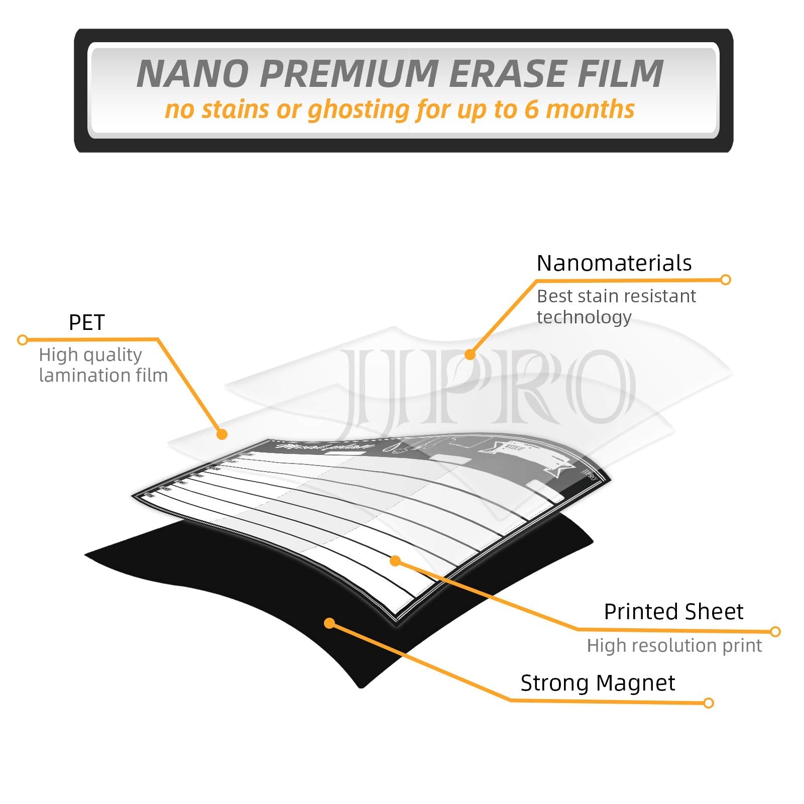 • WET ERASE - With nano premium erase film, it will be a breeze to wipe off the writings even after several months; it’s not going to leave any stains; it’s waterproof, so you can clean it with a wet cloth if you want.
