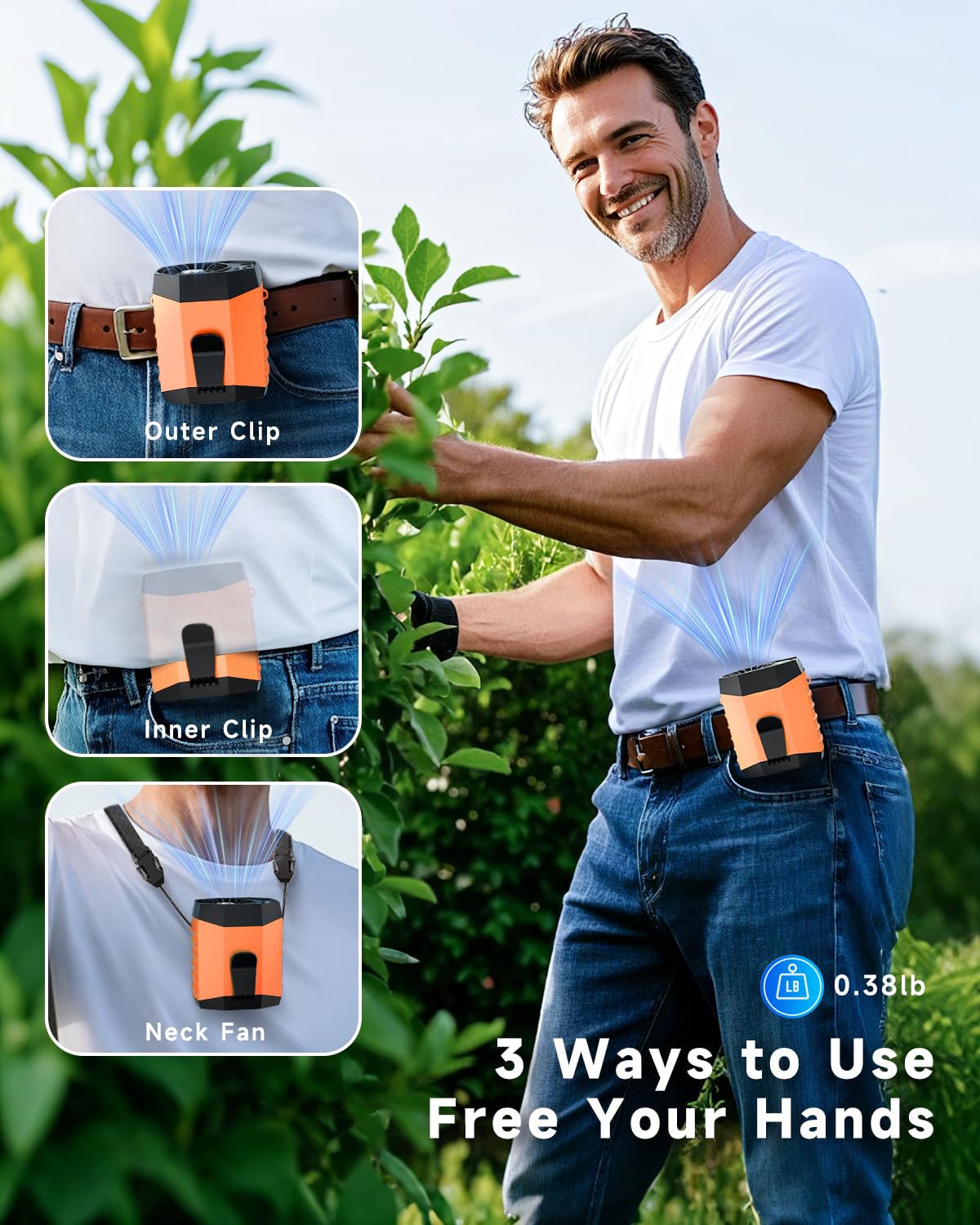 • 【Hands-Free 4-in-1 Cooling Solution】 Stay cool anywhere with this versatile 4-in-1 personal fan! It works as a waist fan, neck fan (with the included lanyard), desk fan, and handheld fan—all in one compact design.Designed for extreme heat, this wearable fan provides powerful, hands-free cooling whether you're indoors or outdoors.