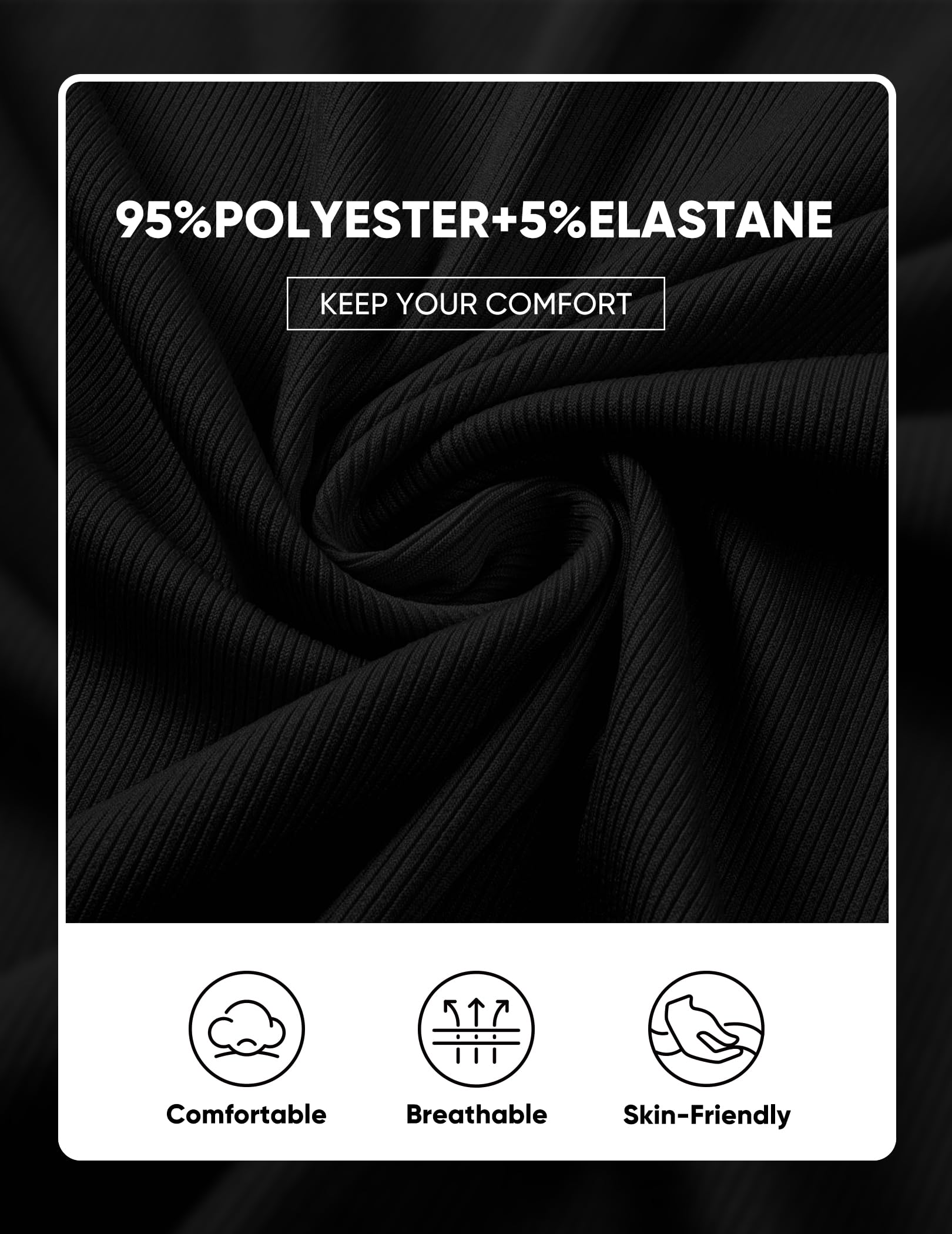 • Men's T-Shirts: Made from 95% polyester and 5% elastane ribbed knit, offering stretchability, breathability, and skin-friendliness. Ideal for daily wear or business, perfect for spring and fall.