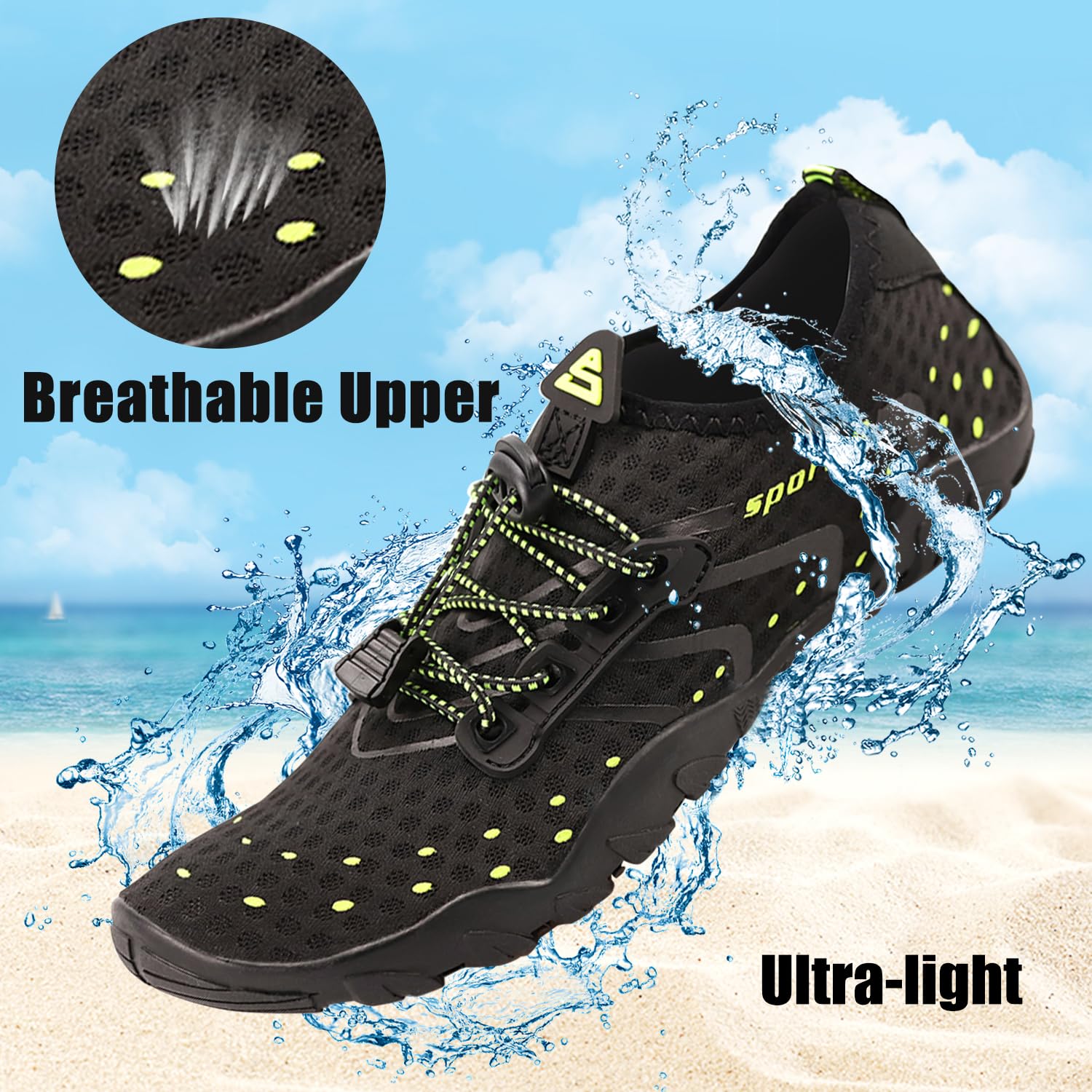 • Excellent material: The water shoes are designed with breathable and ultra-lightweight knitted uppers, give you a non-stuffy foot feeling and comfort.