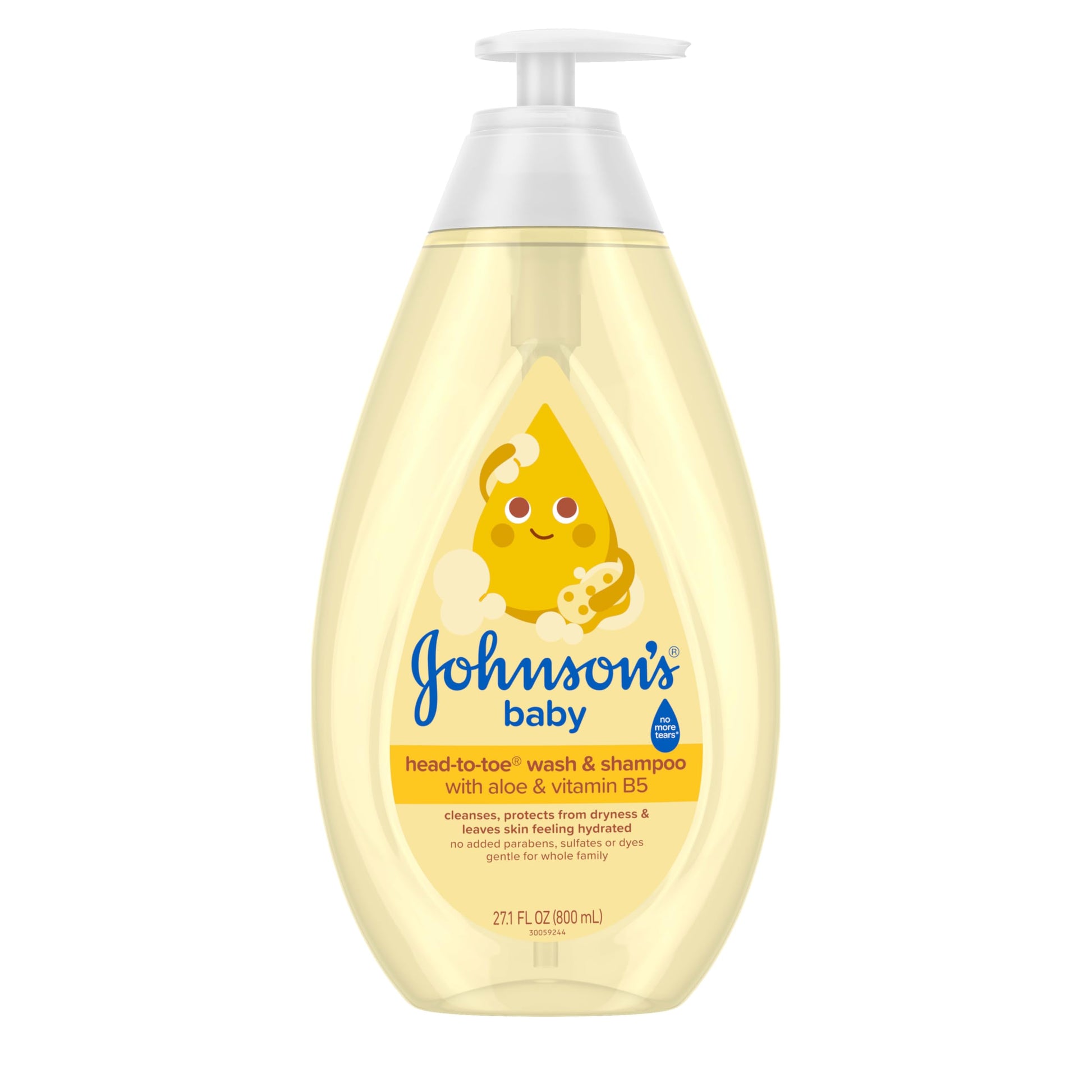 Details: Gentle enough for newborns, Johnson’s Baby Head-To-Toe Wash & Shampoo is a tear-free, 2-in-1 baby wash and shampoo that safely and gently cleanses your baby’s delicate skin and hair. Made with aloe vera and vitamin B5, this non-drying baby wash is clinically proven safe for newborns. It helps protect skin from dryness, leaves your baby's skin feeling soft and hydrated, and is made with Johnson's baby unique gentle scent. This hypoallergenic, pH-balanced baby shampoo and body wash is pediatrician tested and has no added parabens, sulfates, and dyes. The No More Tears® formula is as gentle to the eyes as pure water, making bath time stress-free. Part of the perfect 3-step bath routine: 1. Shampoo with Johnson's Baby Shampoo 2. Wash with Johnson’s Baby Head-To-Toe Wash & Shampoo 3. Moisturize with Johnson’s Baby Lotion Packaged in a bottle made with 50% recycled plastic. Our Formula: Formula, now with Aloe & Vitamin B5: Leaves hair feeling soft and skin feeling soft and hydrated No added parabens, sulfates, & dyes. Tested with Pediatricians; Made with unique gentle baby scents How to Use: Apply with warm water using your hand or a washcloth, gently lather, rinse, & follow with a massage using Johnson's Baby Lotion. Our Brand Story: Johnson’s Baby cares for what is precious: your baby’s precious skin and hair, and precious moments of bonding. For over 125 years, we’ve been committed to crafting gentle, science-backed baby care prod-ucts that support happy, healthy bonding moments. World's #1 Baby & Child Care Brand* *Source Euromonitor International Limited; Beauty and Personal Care 2025 ed. As per Baby and Child-Specific Products Category; all retail channels; value sales at RSP; 2024 data.