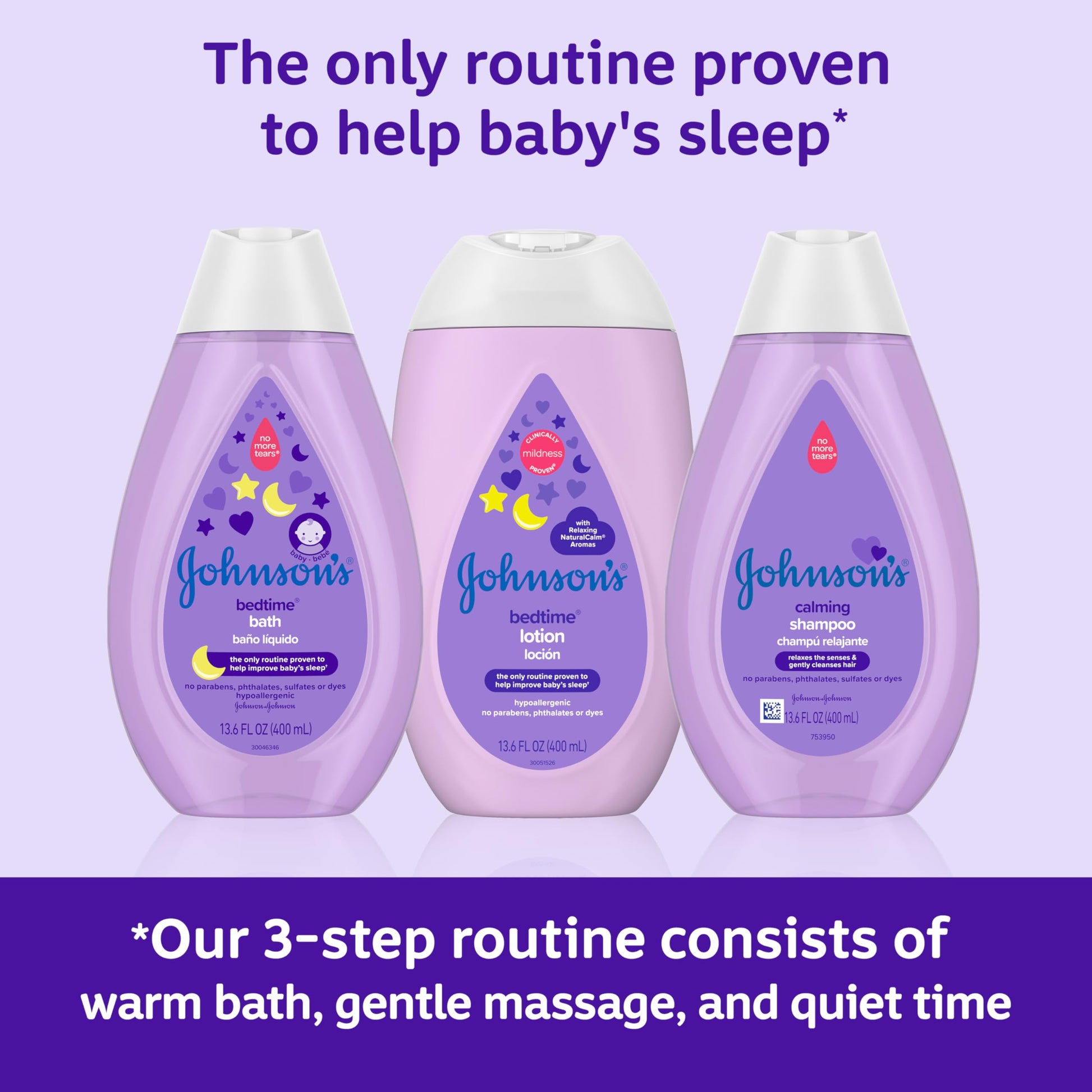 • We developed a 3-step routine that is clinically proven to help your baby sleep better. Before bed, treat baby to a warm bath using our Bedtime Bath & Calming Shampoo. Then, gently massage their skin with out Bedtime lotion & follow with quiet time
