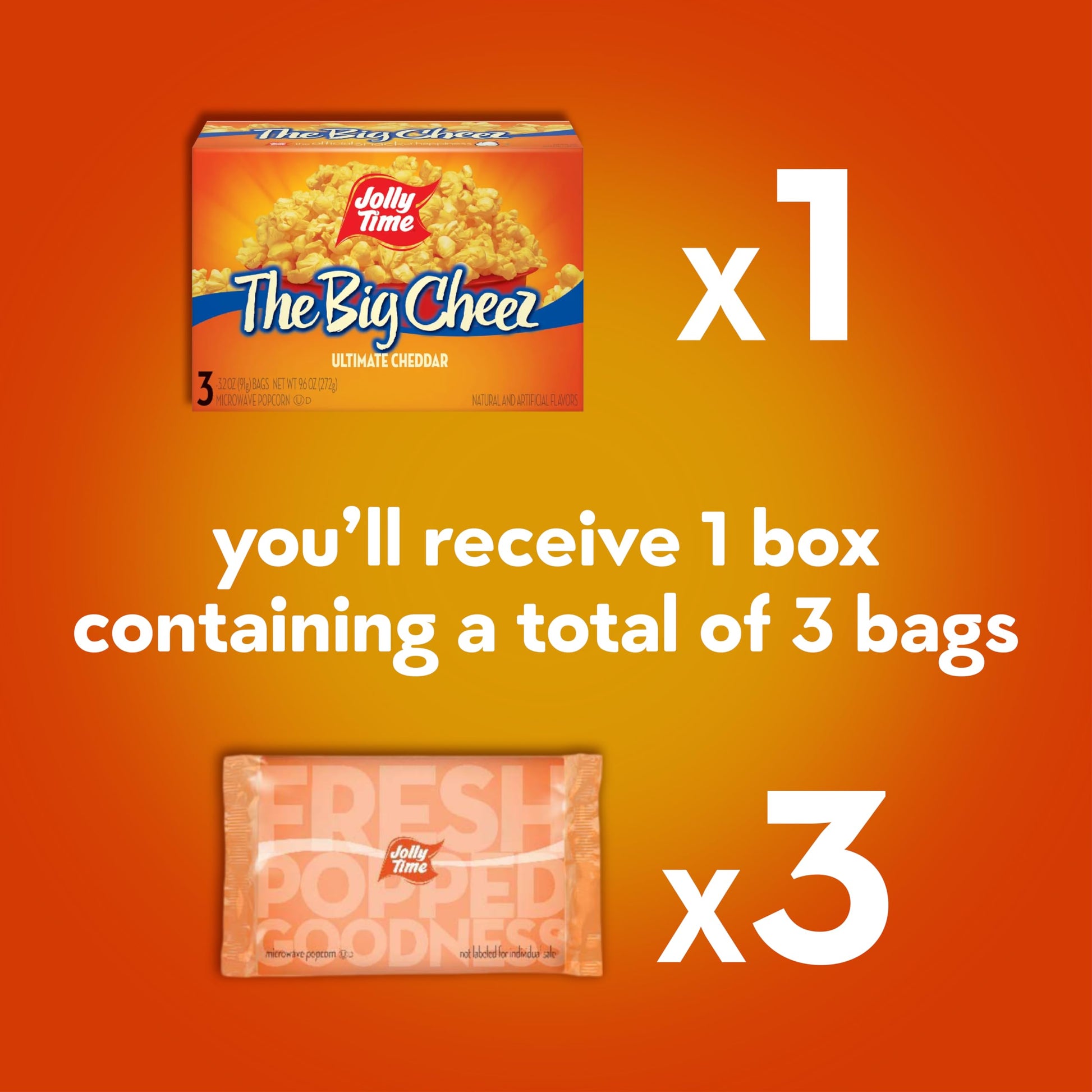 Jolly Time The Big Cheez, Cheddar Cheese Microwave Popcorn, 3.2oz Sharing Bag, 3 Bags Per Carton (The Big Cheez, 3.2 Ounce (Carton of 3))