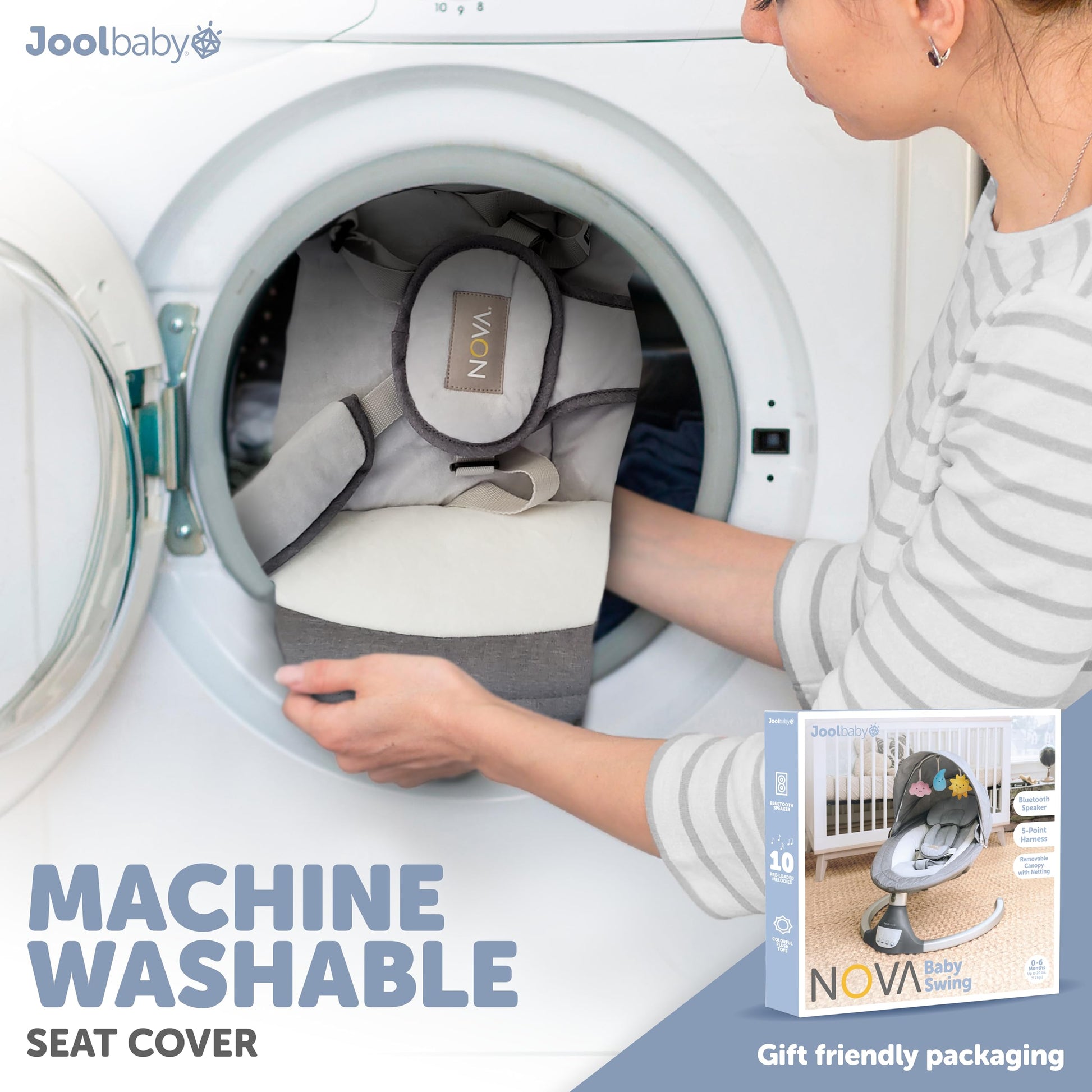 Jool Baby Nova Swing for Newborns - Electric Motorized Infant Swing, Bluetooth Music, 10 Preset Melodies, Remote (Updated Model, Gray)