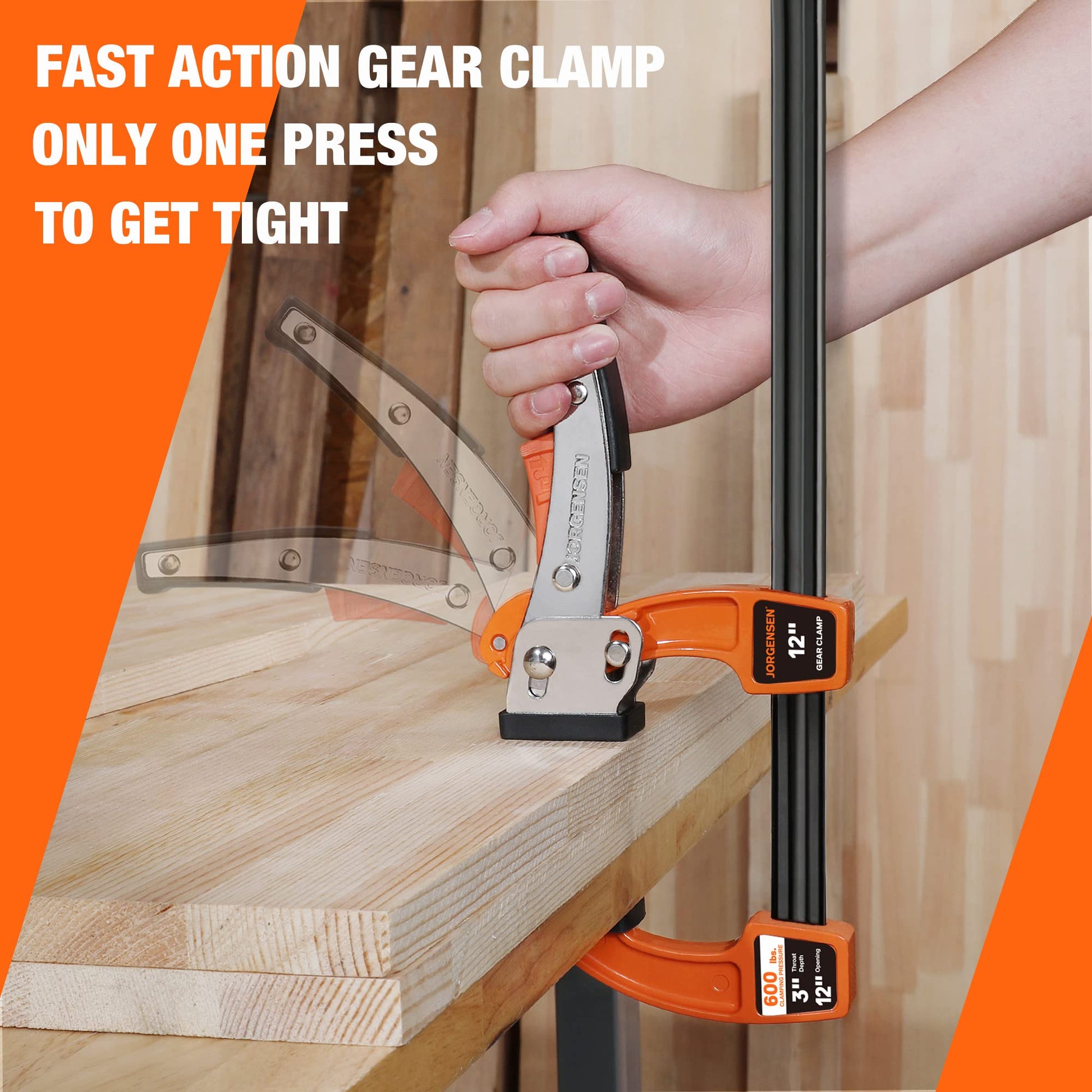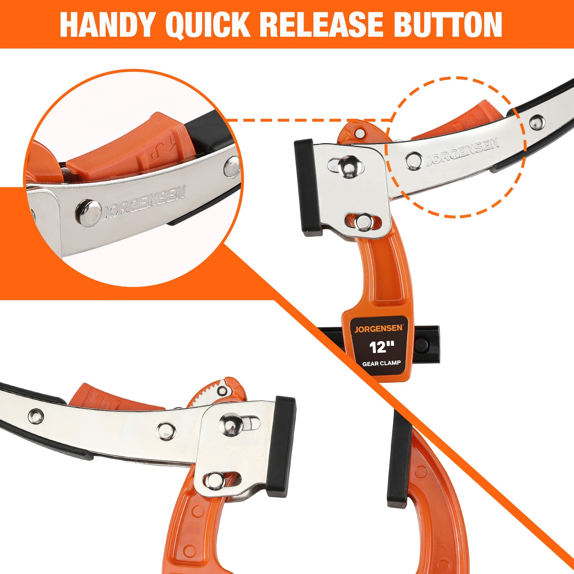 Jorgensen 12-inch Bar Clamp Set, Bar Clamp for Woodworking, Quick Release Gear Clamp with 600 lbs Load Limit - 2 Pack